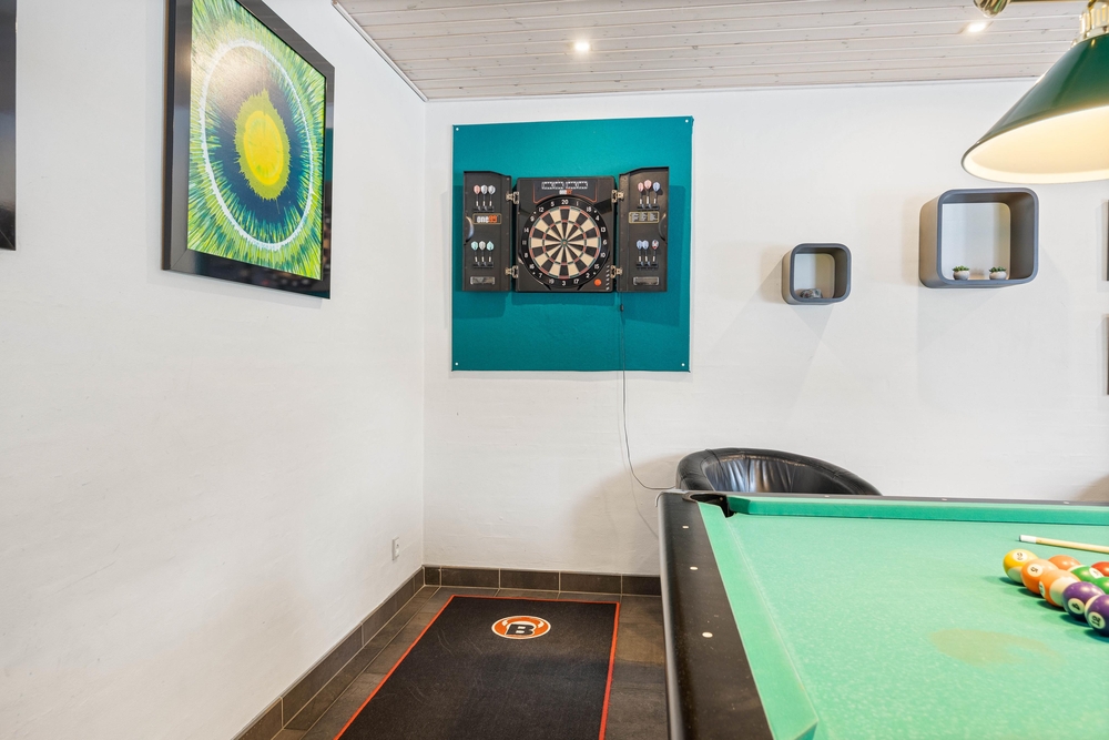 Sommerhuset byder også på andre muligheder for at tilbringe mange sjove stunder sammen i løbet af ferien. Her kan I nemlig spille bordtennis, billard, bordfodbold og dart. Måske der endda skal arrangeres en sjov spilaften, hvor I kan finde ud af, hvem der mestrer de forskellige aktiviteter?