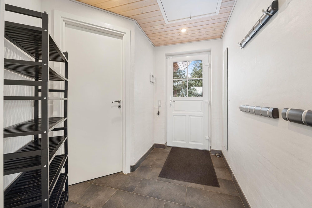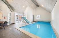 Et af højdepunkterne i sommerhuset er det skønne poolrum, hvor feriens vandhunde helt sikkert kommer til at tilbringe mange timer. Her venter jer nemlig en 24 kvadratmeter stor swimmingpool, hvortil der også er en rutsjebane.