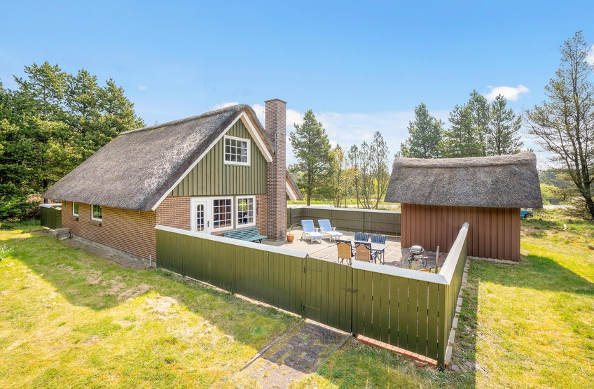 Dette hyggelige, stråtækte murstenshus, som byder på plads til op til 6 personer på 2 etager, kan blive jeres næste feriehjem! Afskærmet beliggenhed i udkanten af Blåvand og stort grundstykke med gyngestativ til de små feriegæster.