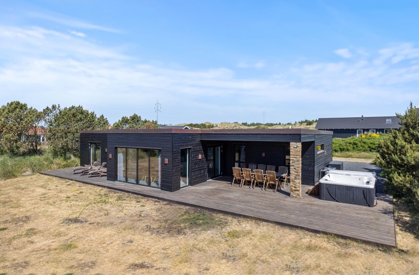 Dette moderne feriehus blev opført i 2019 og indeholder alt det udstyr, man har brug for til en dejlig ferie. 8 personer kan bo i sommerhuset samtidig og opleve Vestkystens natur.