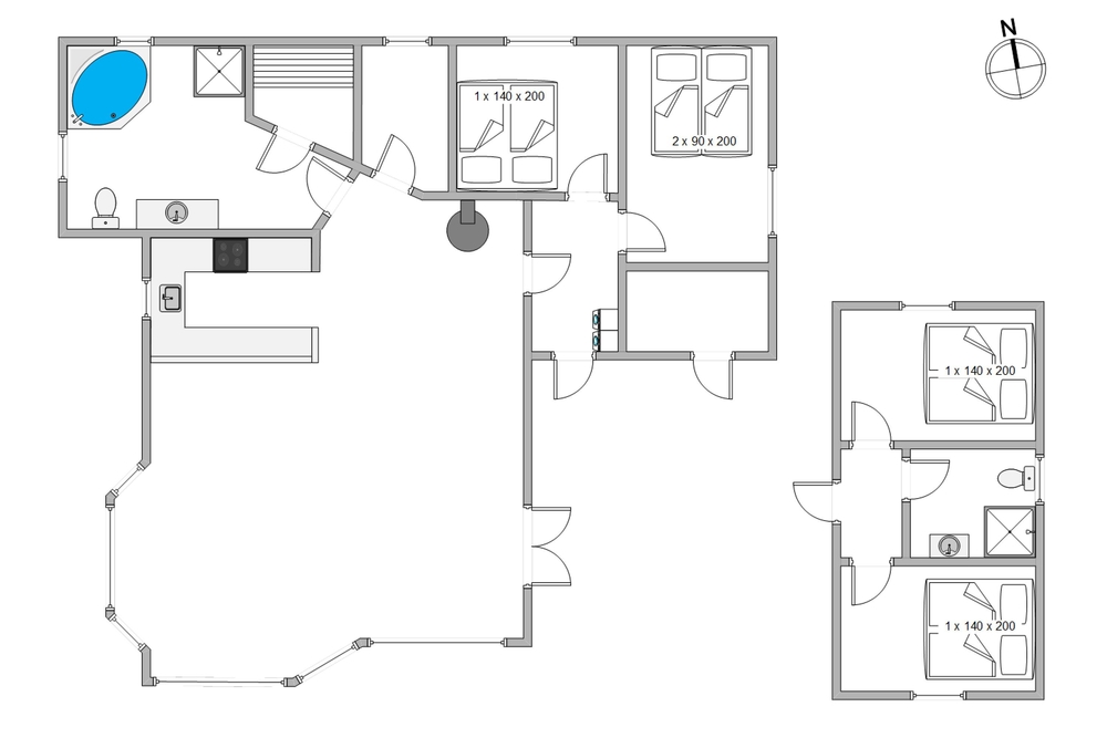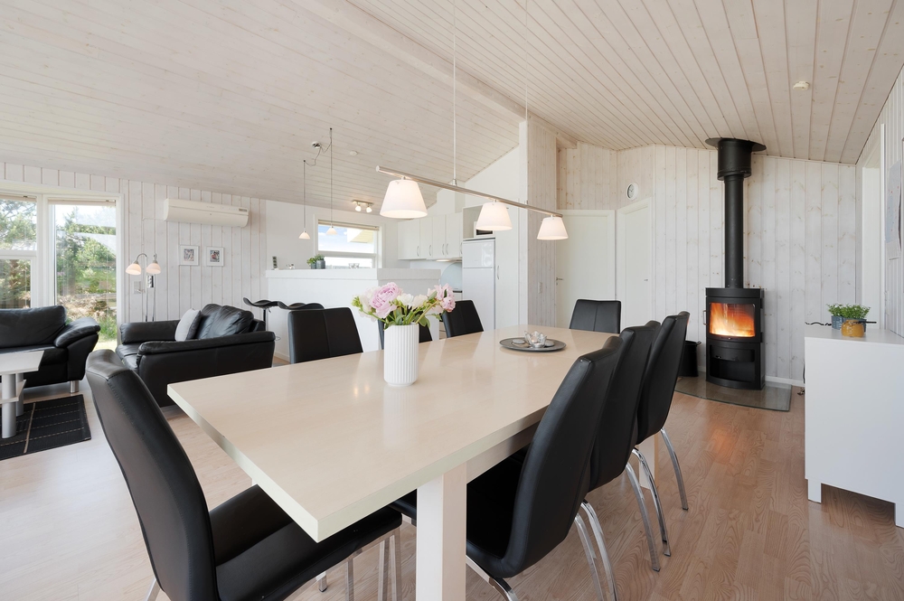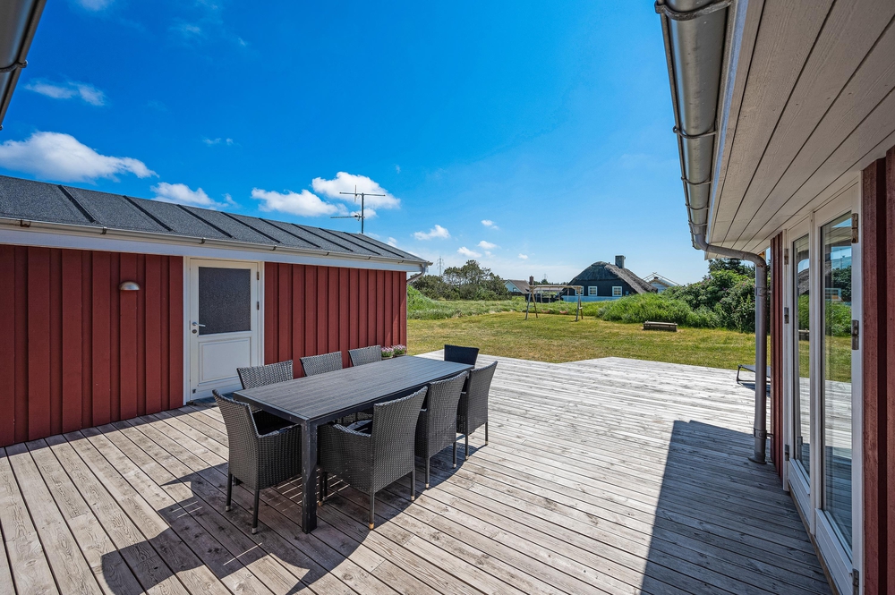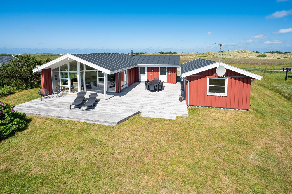 Dette feriehus er lyst og venligt indrettet, og det fremstår velholdt og veludstyret i forhold til, hvad man ønsker sig af et moderne hus. Med 4 sovepladser i selve huset samt 4 ekstra i annekset, er der rig mulighed for at holde ferie med hele familien, mens der stadig er plads til at trække sig tilbage og få lidt privatliv, hvis dette ønskes. En tur i sauna efter en skøn tur langs Vesterhavet og så sidde foran en knitrende brændeovn efterfølgende, så er det ægte ferie.