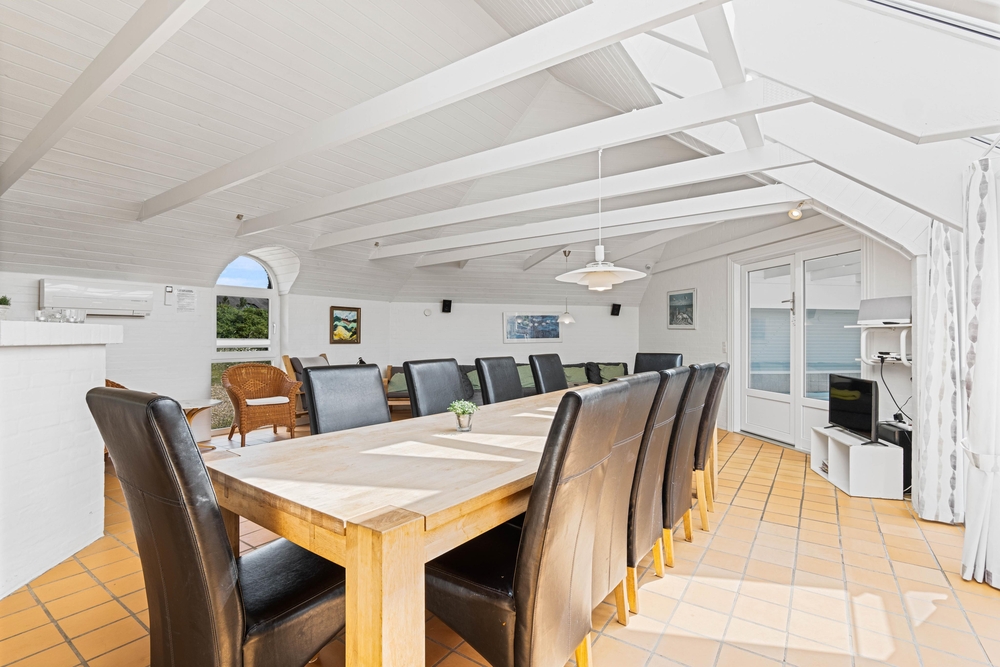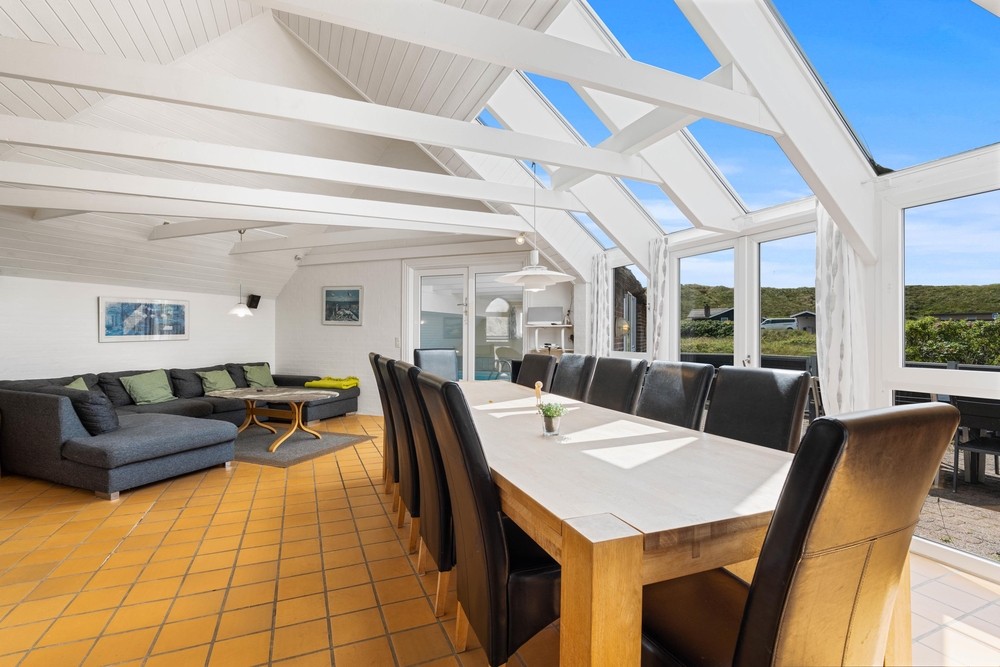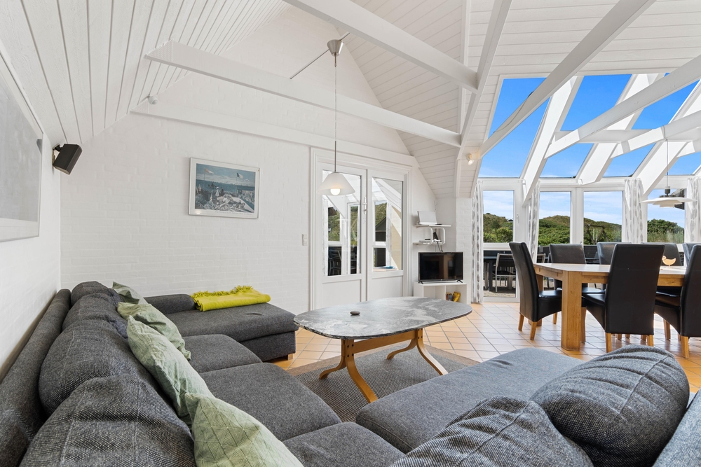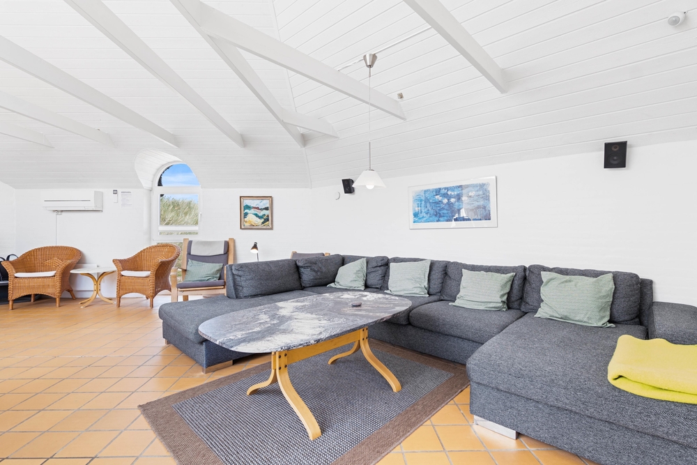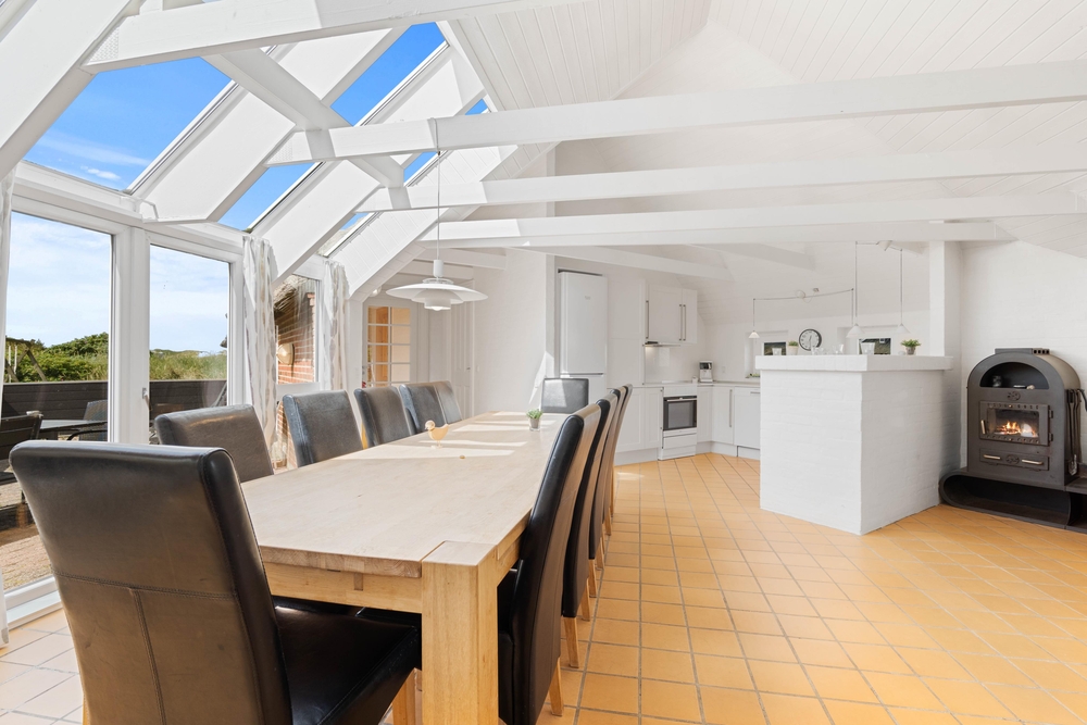 På 200 kvm er der plads nok til op til 10 personer ? ideel til større familier og venner, der ønsker at tilbringe en afslappende ferie sammen. Jeres 2 hunde er også meget velkomne i dette sommerhus. I den rummelige opholdsstue med klinkegulv og gulvvarme er en afdeling med sofa, tv og brændeovn.