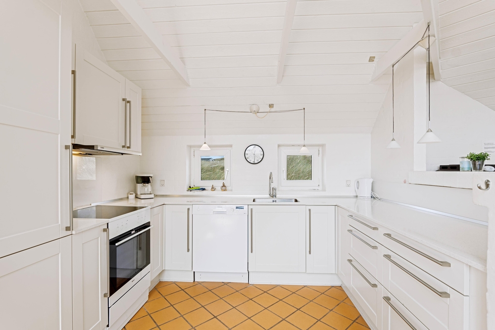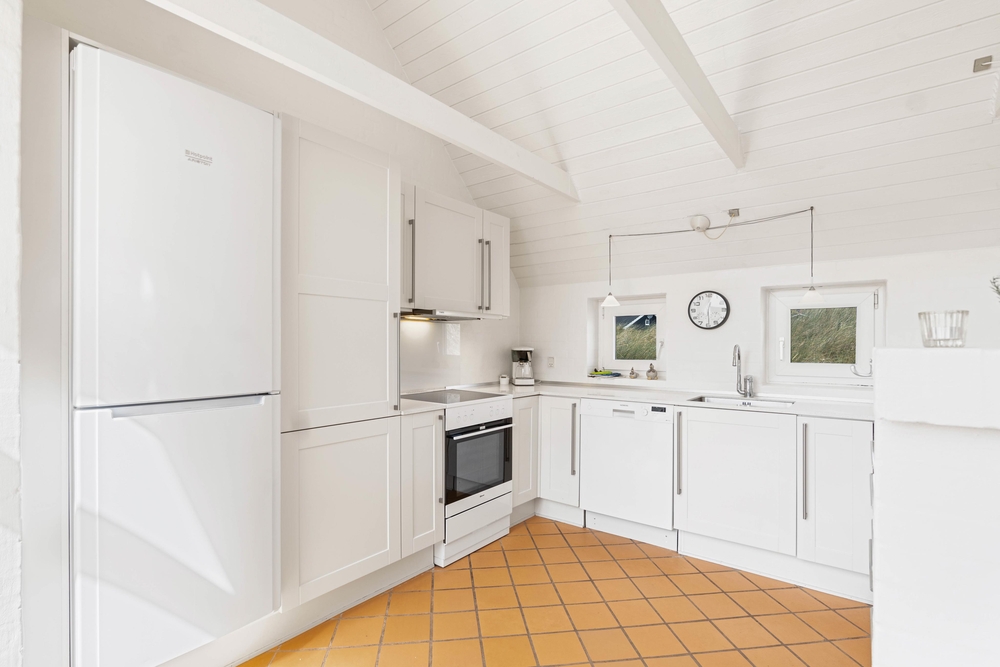Nyd stemningen med et glas vin sammen i den lyse opholdsstue. I køkkenet kan du fremtrylle en eller flere retter og gerne benytte dig af den integrerede opvaskemaskine. I køleskabet med 80 liters fryser er der god plads til lokale specialiteter, og lystfiskere vil også finde plads til deres fangst her.