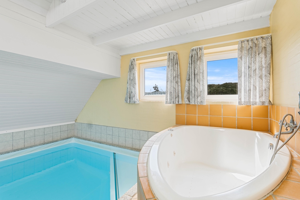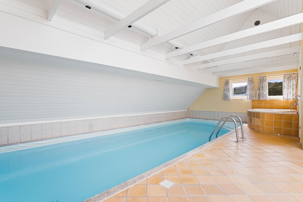Skodbjergevej 28 er beliggende midt i naturen og der venter spændende oplevelser på jer her. Dette lyst indrettede sommerhus har sit eget poolområde med 20 kvadratmeter pool, spabad og sauna. Med den energibesparende varmepumpe kan du få behagelige temperaturer selv på kolde dage. De store ovenlys giver masser af lys og skaber en lys og imødekommende atmosfære.