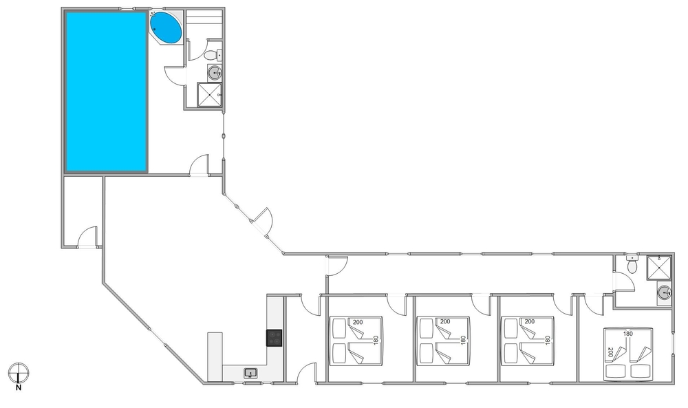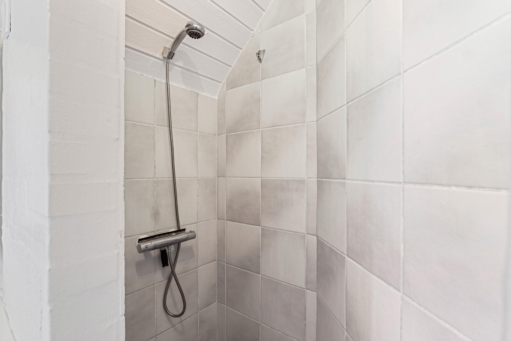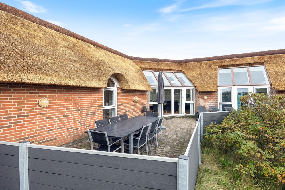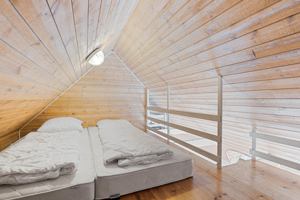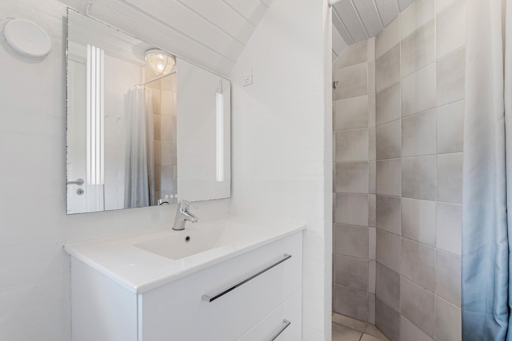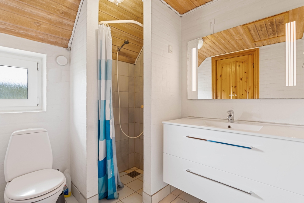 De 2 badeværelser med gulvvarme bidrager til at forhindre trafikpropper om morgenen. Her kan du også vaske og tørre tøj. 4 soveværelser med komfortable dobbeltsenge og hems med 2 ekstra senge sikrer en god nats søvn i den friske luft efter en spændende dag på Vestkysten.