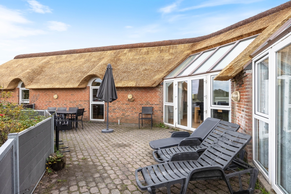 Omgivet af en skøn naturgrund kan I hygge jer på den lukkede terrasse. Dette er naturligvis særligt praktisk for hundeejere eller småbørnsfamilier. Glæd jer til hyggelige grillaftener med hele familien. Læs en god bog i de komfortable havemøbler, mens børnene bruger det store grundstykke til leg.