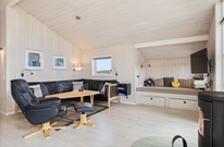 Feriestemningen melder sig straks, man træder ind ad døren til Skodbjergevej 38. De lyse og venligt indrettede opholdsrum med træbeklædte vægge og lofter op i kip giver et frit og luftigt miljø. Det fine lysindfald gennem vindues- og dørpartier bidrager til, at man føler sig midt i naturen, og udsigten kan man falde i staver over. Med ild i brændeovnen kan I hygge jer sammen i stuen, spille et spil eller trække jer tilbage med en god bog. I alkoven kan børnene lege, eller man kan tage lur i løbet af dagen.