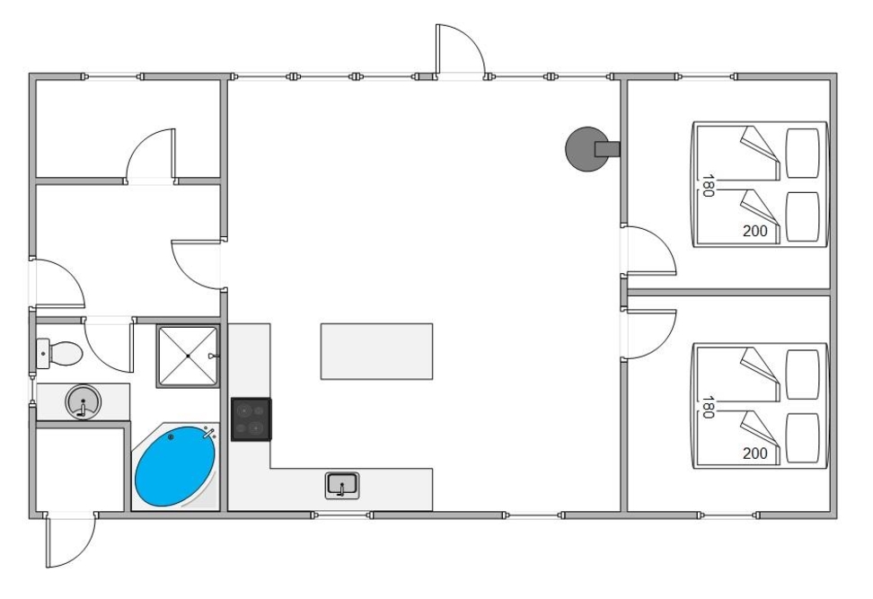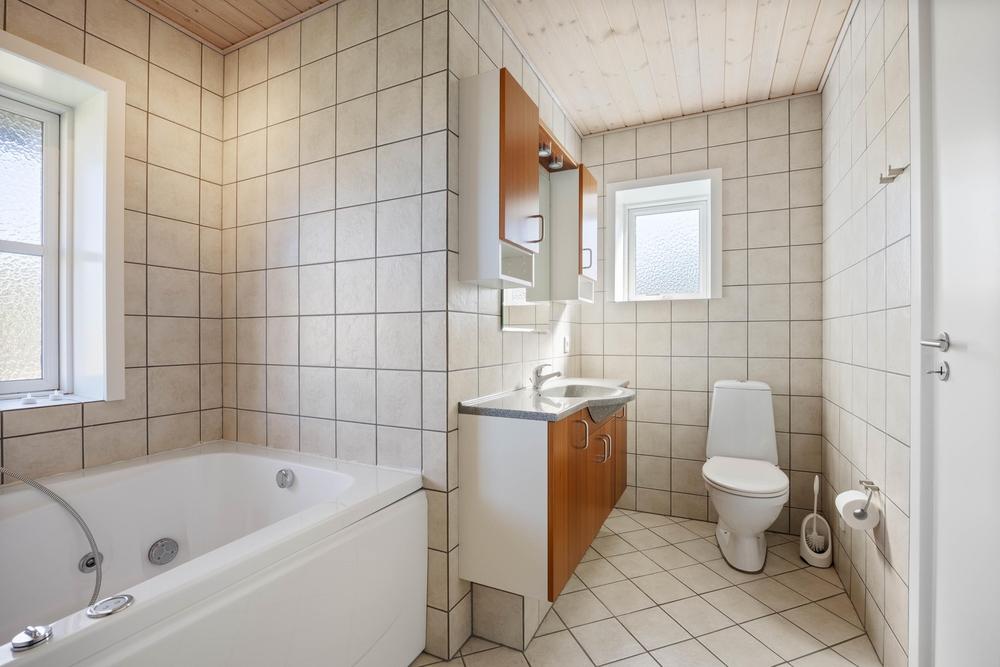 Her er 2 fine soveværelser, begge med indbyggede skabe til opbevaring og en god dobbeltseng. Spabadet til 2 personer er helt perfekt efter en lang gåtur med familien. Her kan I komme helt ned i gear og glemme hverdagen for en stund. Praktisk er her både vaskemaskine og tørretumbler, som sørger for lækre, friske håndklæder.