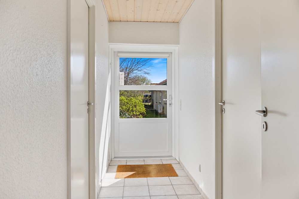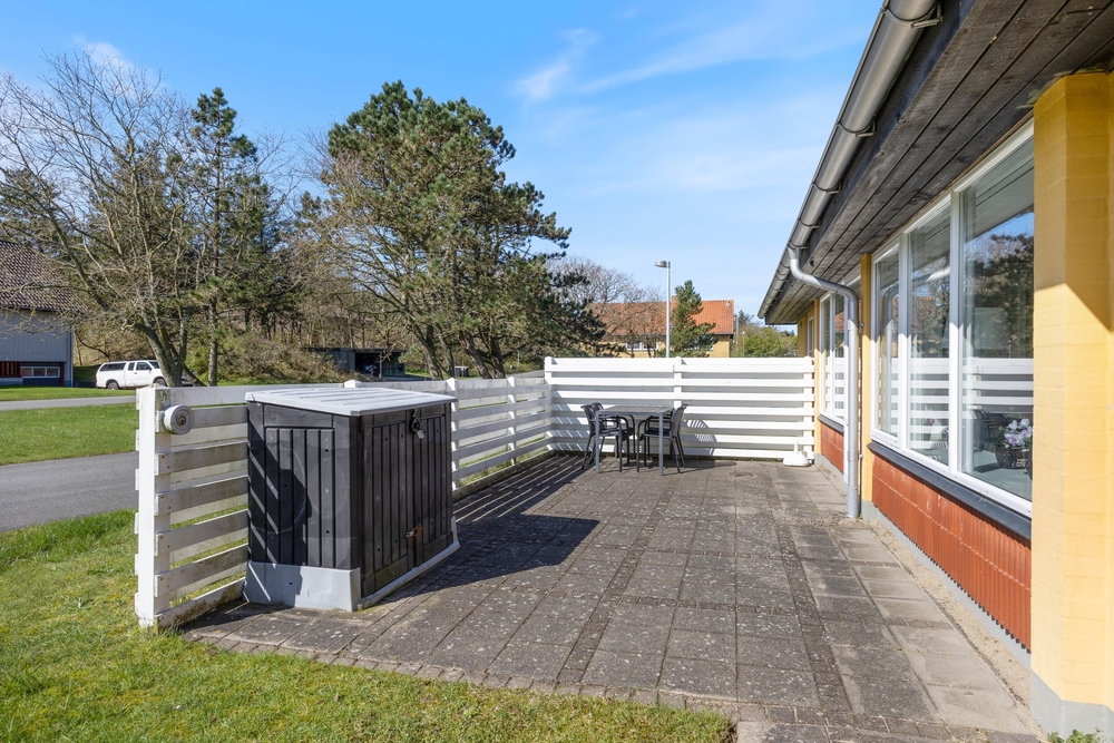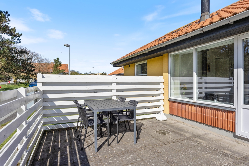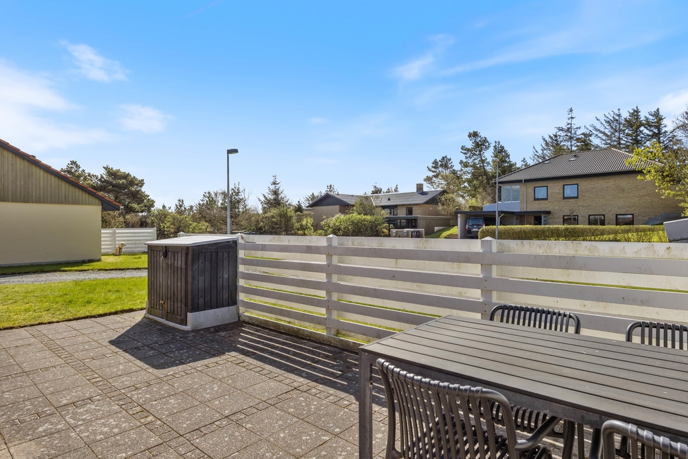 Ryk ferien ud på terrassen, hvor havemøbler og liggestole står til rådighed for jer. Den sydvendte terrasse er afskærmet, så I ikke sidder helt til skue.