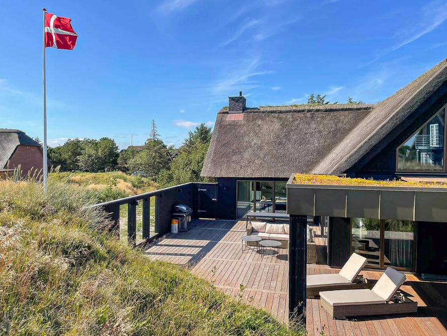 Trænger I til ferie i et topmoderne, nordisk inspireret sommerhus med stråtag, der er bygget i 2022, og som ligger i et roligt og naturskønt område ved Fanø Bad? Så er dette feriehus lige det rette for jer. Feriehuset på Skovsletten 6 har en fantastisk beliggenhed tæt på skovområde og kun 500 meter til strand og golfbane. Her får I altså ægte feriestemning med plads til 7 personer ? og jeres hund er her også velkommen.