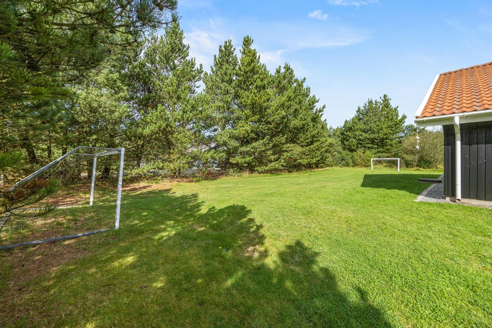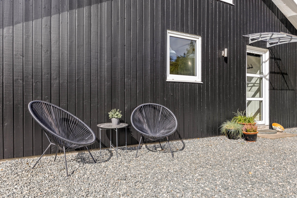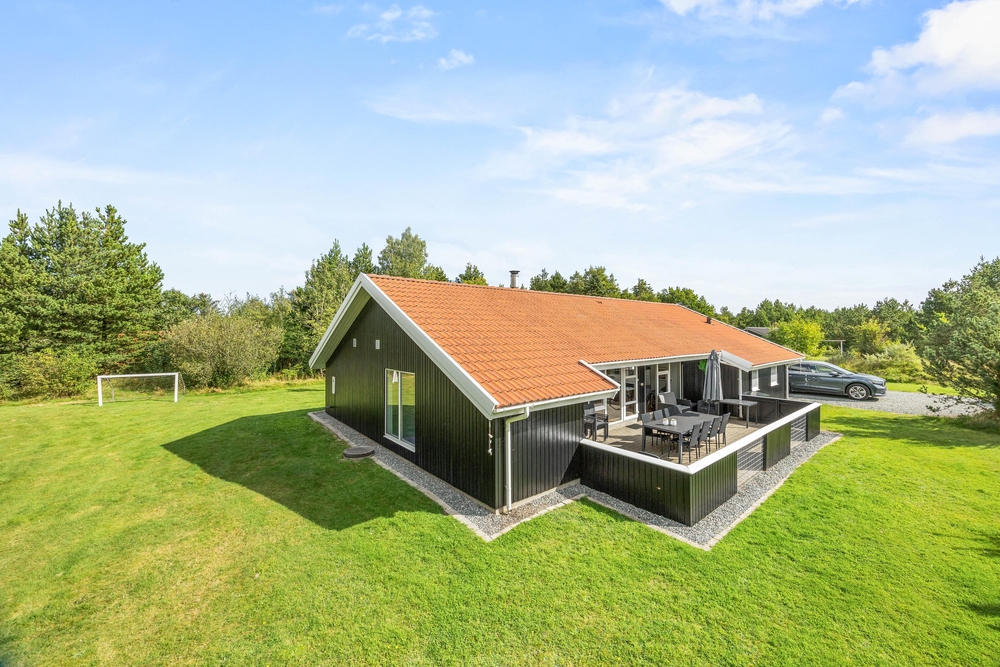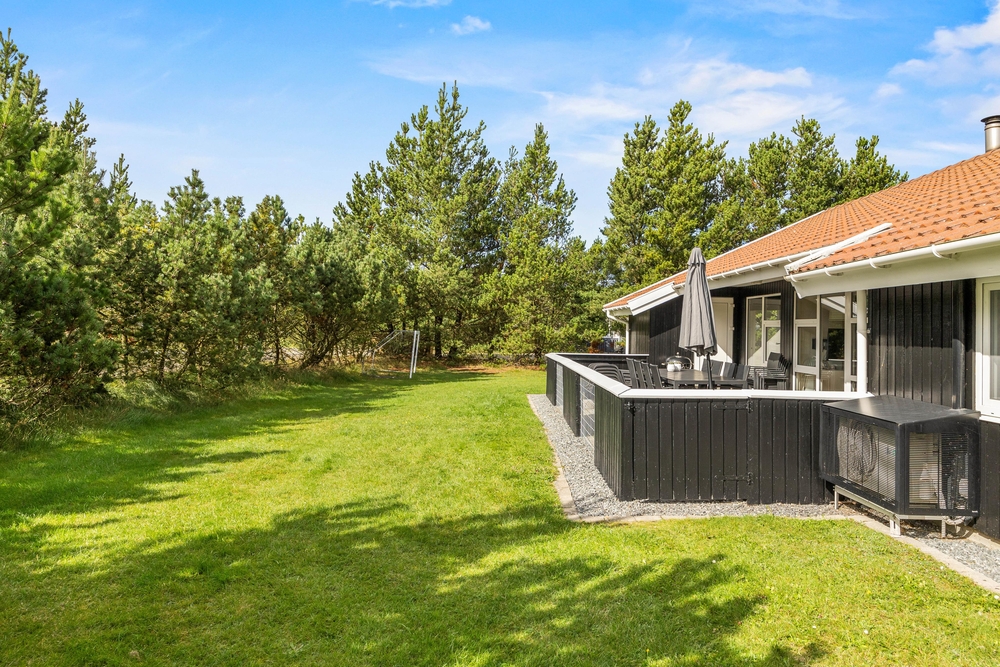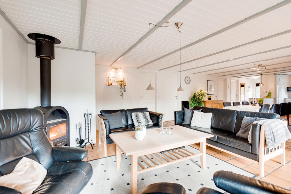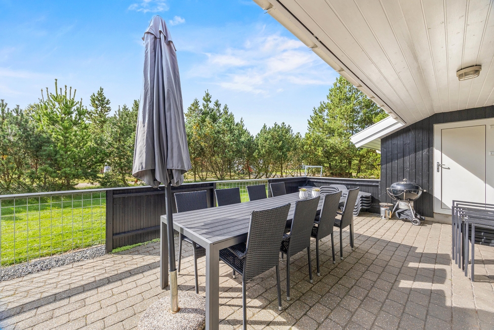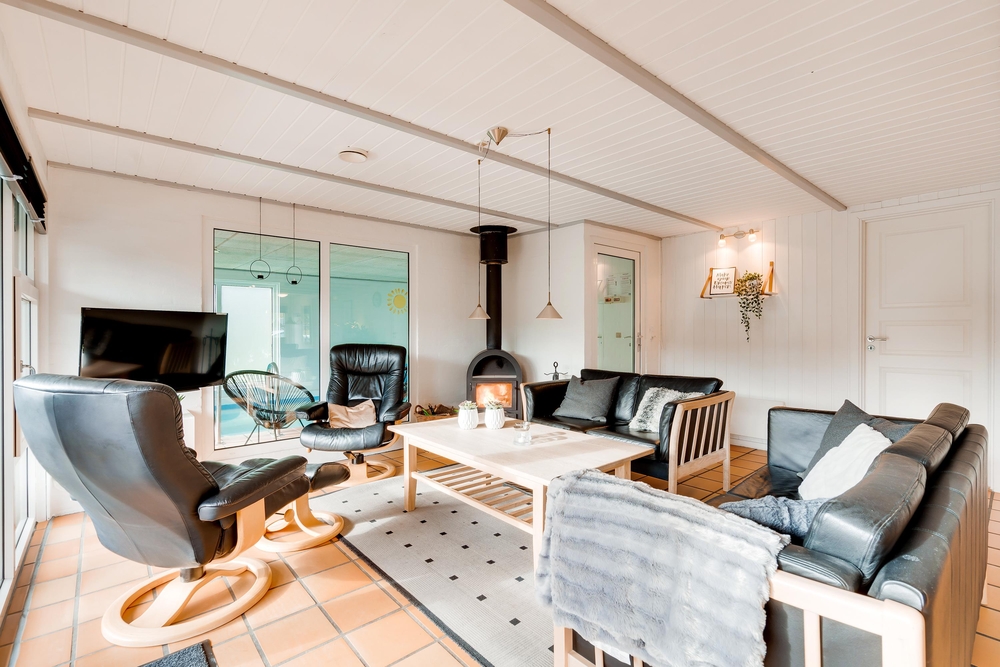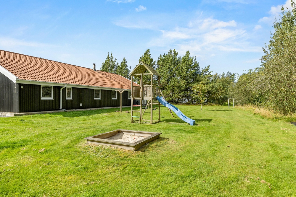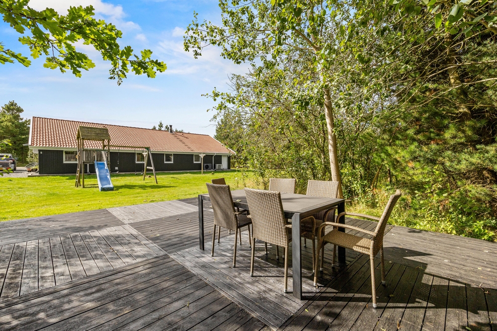 På terrassen har I rig mulighed for at nyde solen, mens børnene og hunden leger på den store græsplæne, der omgiver huset, hvor der oven i købet er sørget for en legeplads til børnene. Den lukkede terrasse er også perfekt til hunden og børnene, så I ikke behøver at holde dem under opsyn.