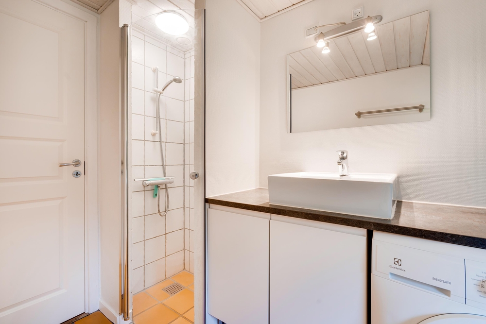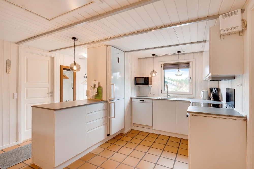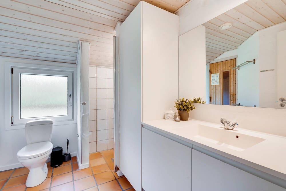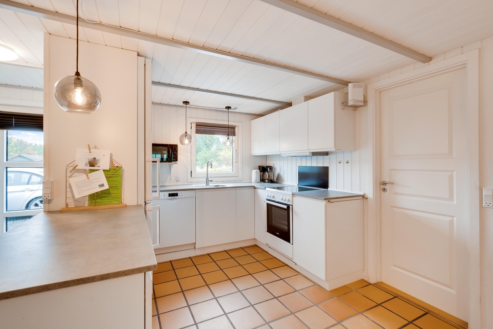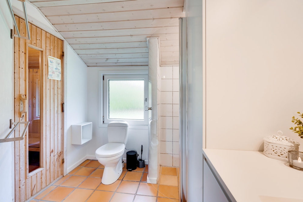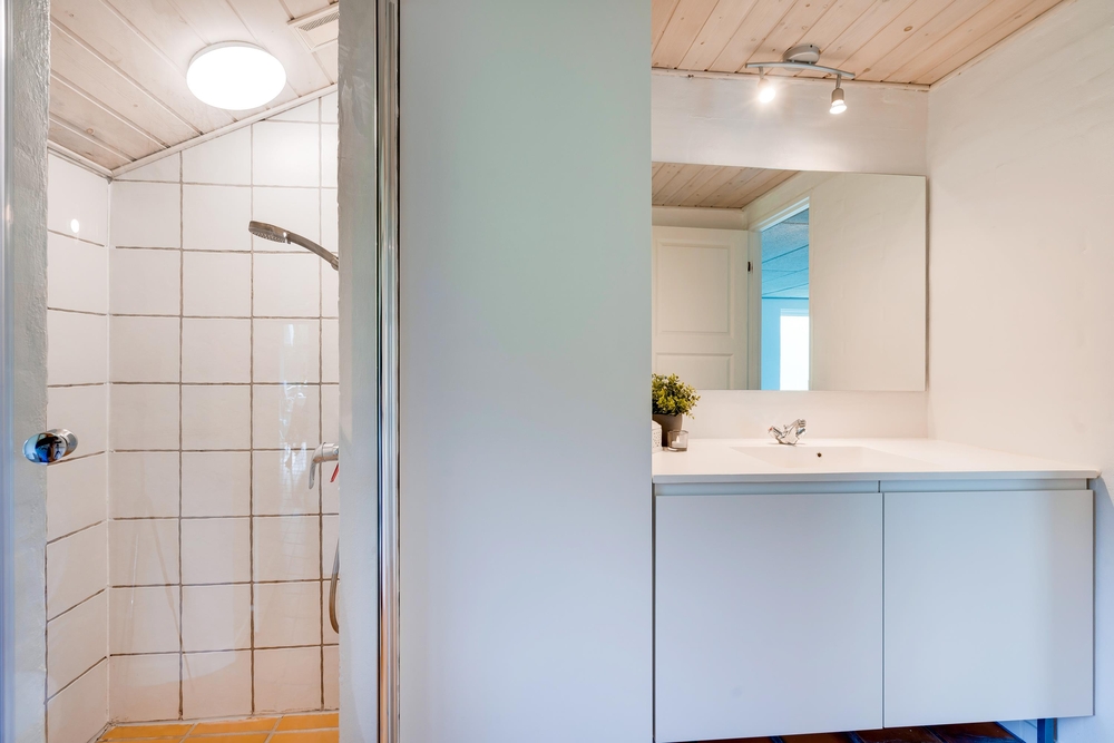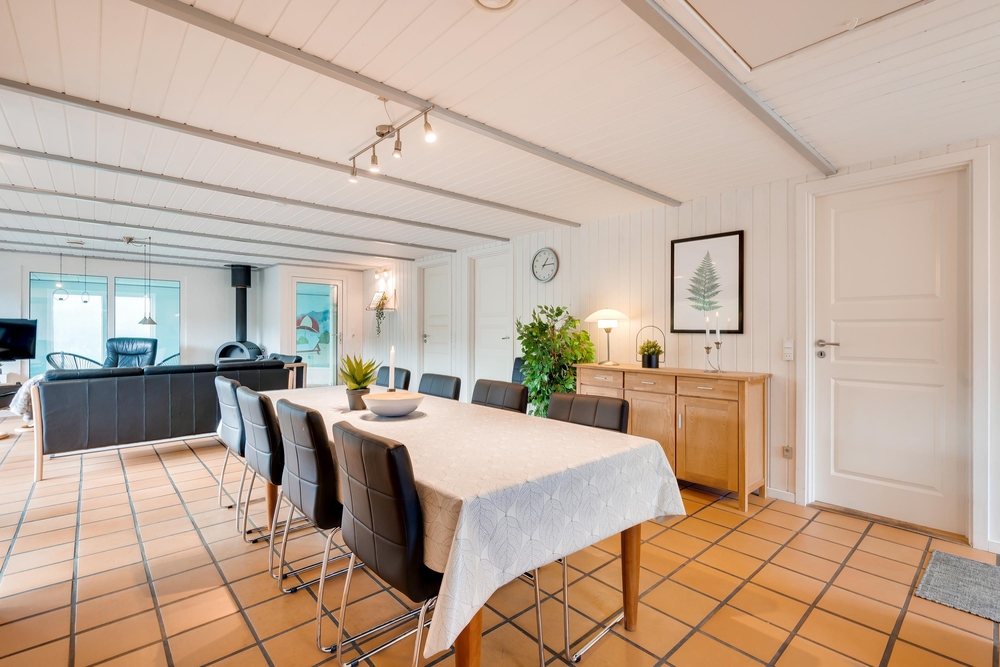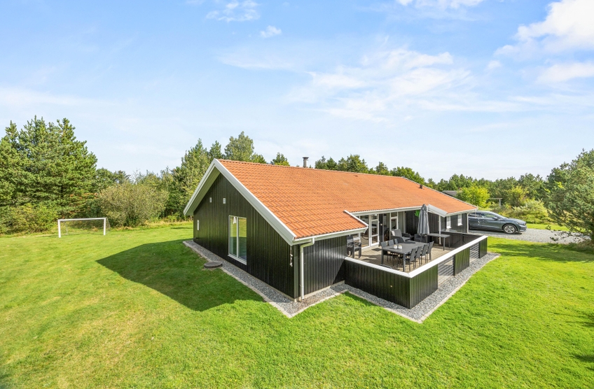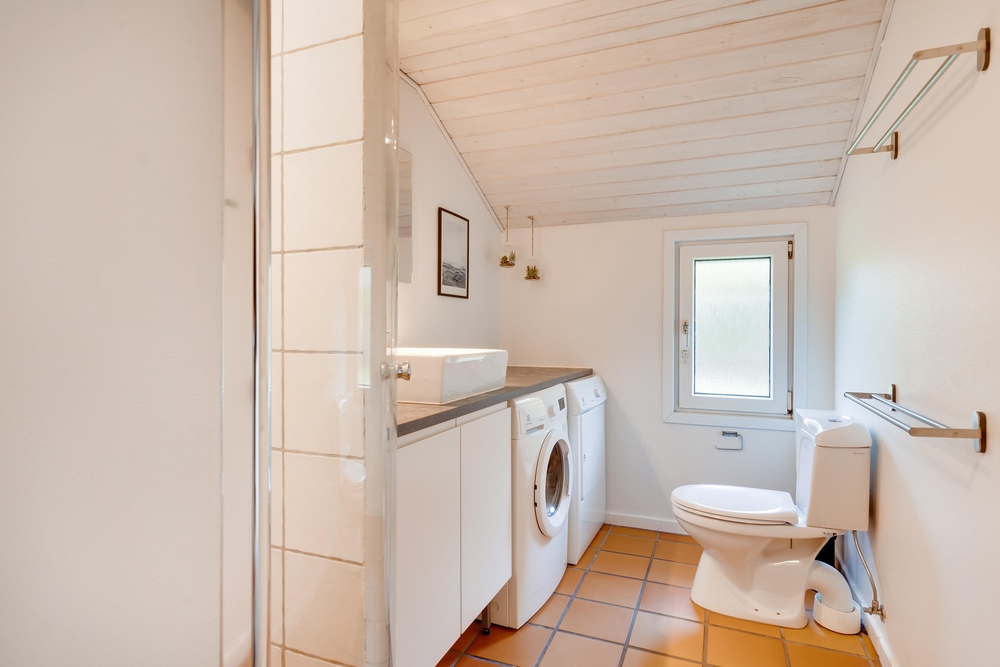 På terrassen har I rig mulighed for at nyde solen, mens børnene og hunden leger på den store græsplæne, der omgiver huset, hvor der oven i købet er sørget for en legeplads til børnene. Den lukkede terrasse er også perfekt til hunden og børnene, så I ikke behøver at holde dem under opsyn.