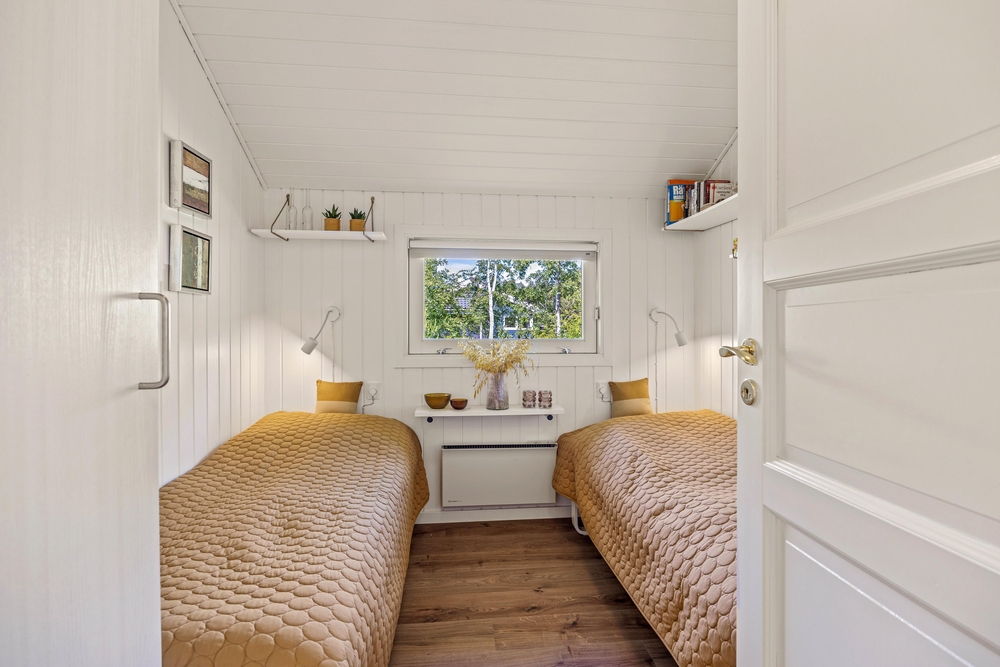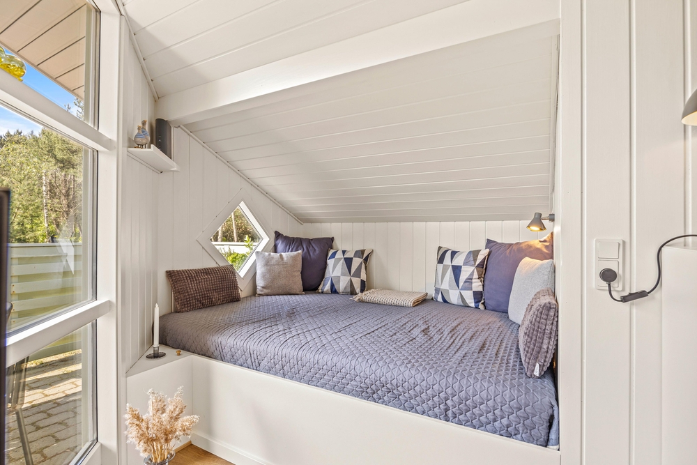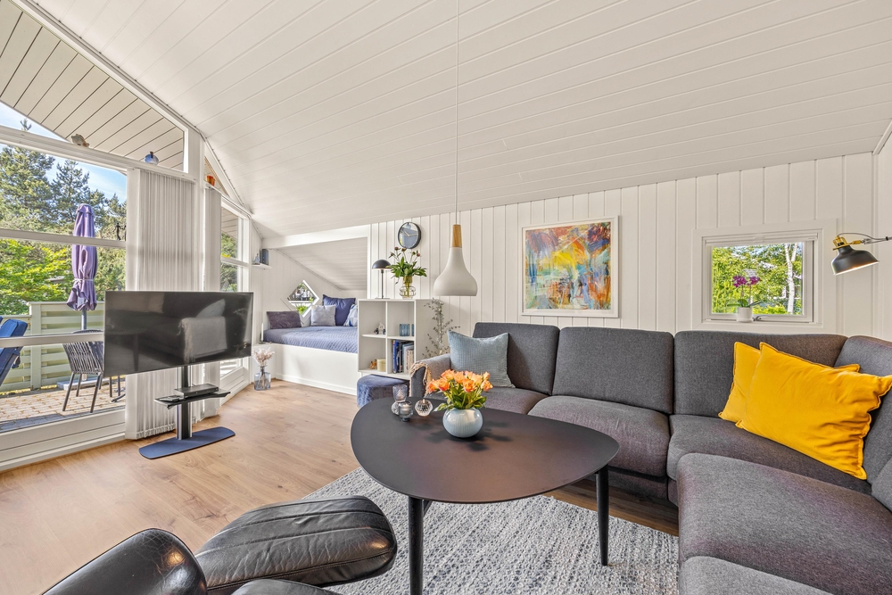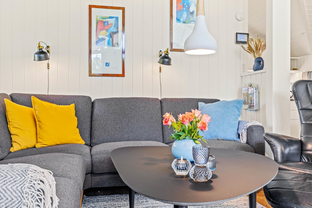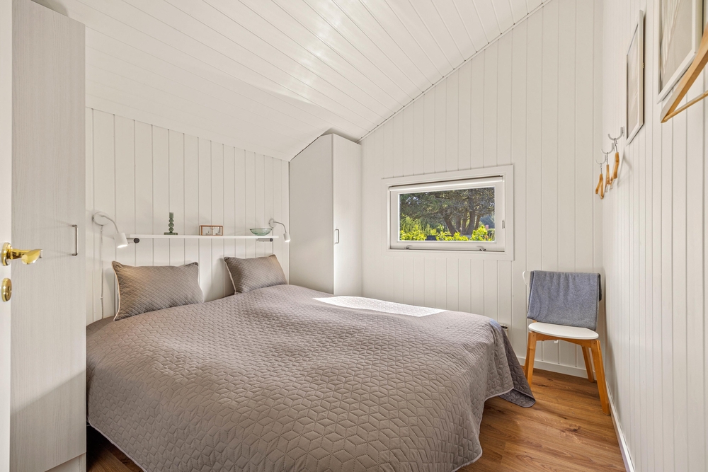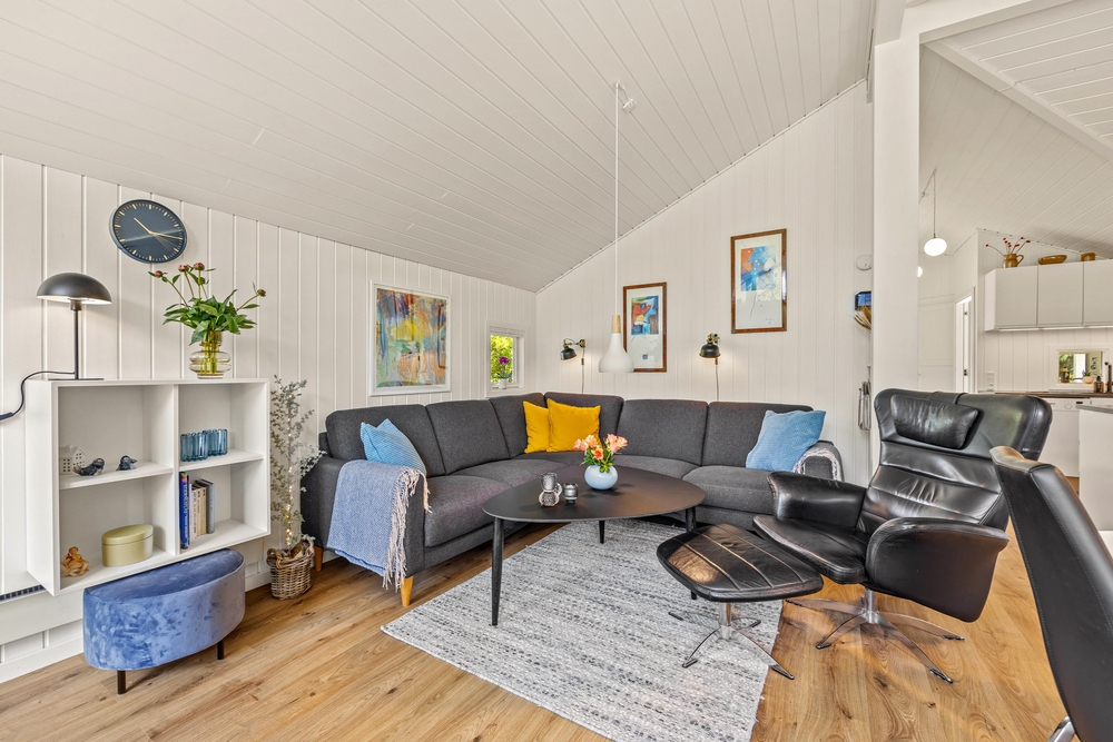 Træhuset er lyst og hjemligt indrettet, og den kombinerede spisestue med integreret nyt køkken (2022) er husets hjerte og bliver centrum for samvær i løbet af ferien. De store vinduesfronter lader solens lys slippe ind og giver jer samtidig en flot udsigt ud over haven og naturen, som I bor midt i. Efter maden kan I sætte jer godt til rette i sofaen og nyde varmen fra brændeovnen, mens opvaskemaskinen klarer oprydningen for jer.