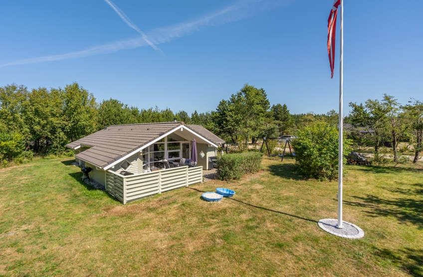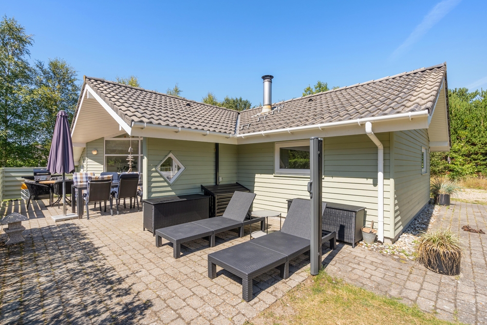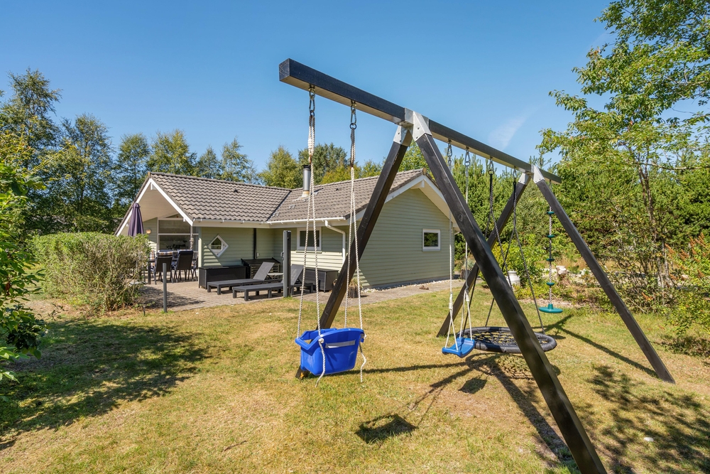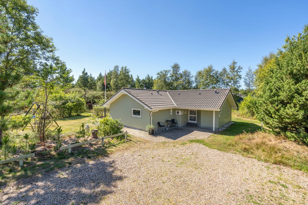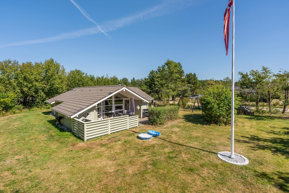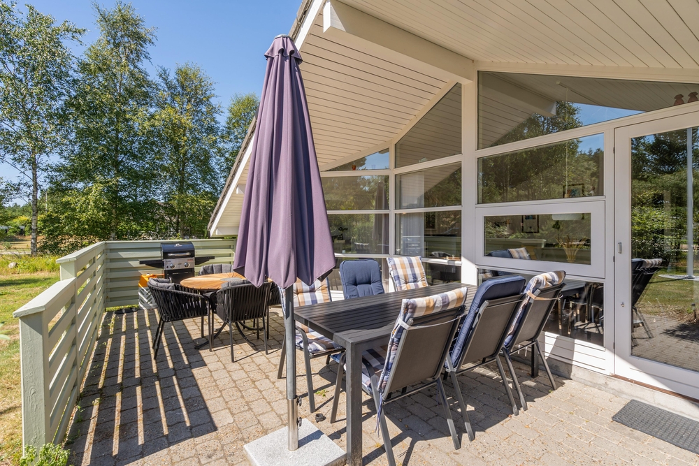 Huset er omgivet af en stor have med masser af græsplæne, og fra stuen kommer I ud på den skønne terrasse. Her kan I helt uforstyrret nyde feriedagene og solen, mens børnene tumler på græsplænen eller leger på gyngestativet eller i sandkassen. Om aftenen kan I tænde op i grillen, og på den overdækkede del af terrassen kan I tilberede et lækkert grillmåltid ligegyldigt vind og vejr.