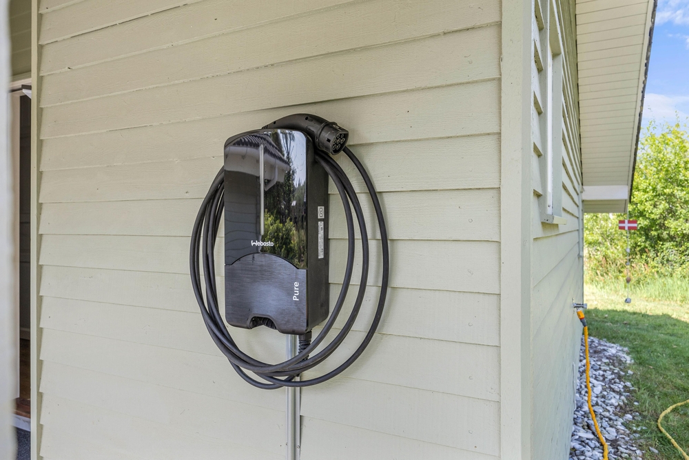 En ekstra luksus er at dette sommerhus har egen ladestander til familiens el-bil.