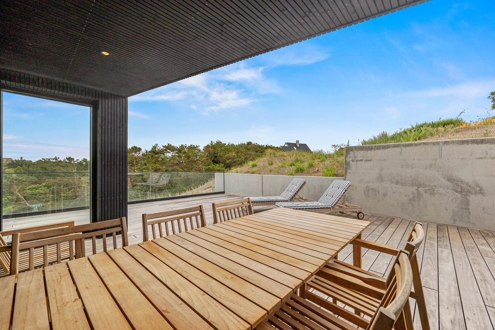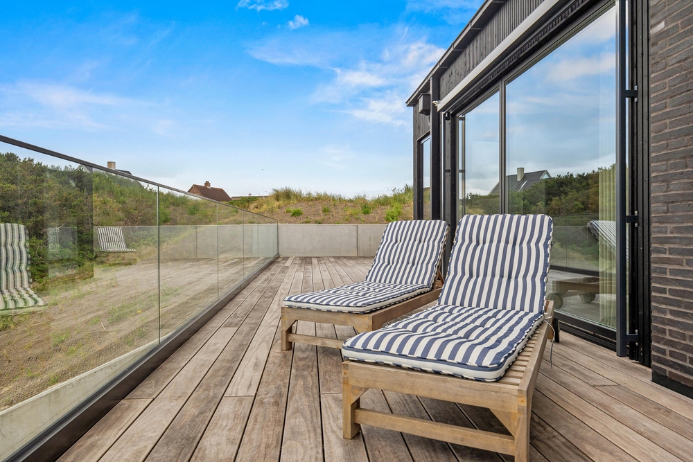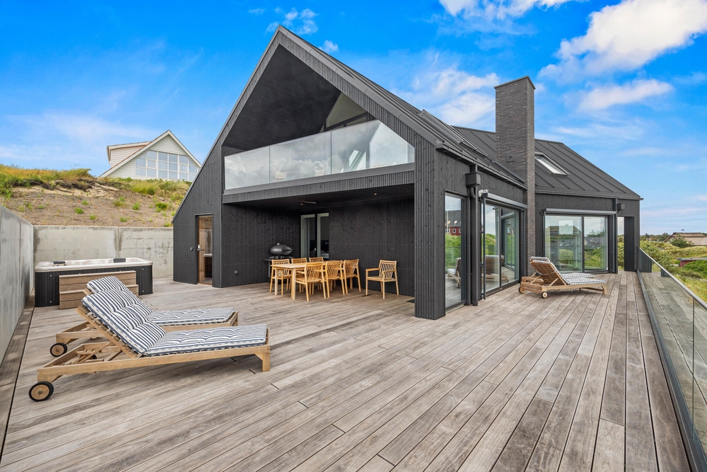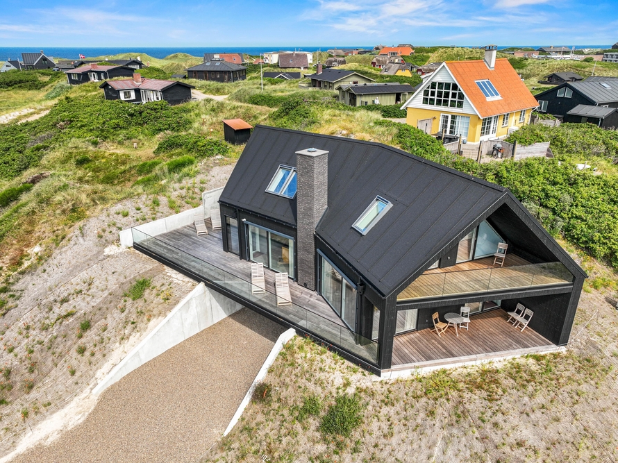 Sommerhuset er designet i en imponerende tre-plans løsning, der med i alt 165m2 tilbyder masser af plads og privatliv for alle gæster. Den gennemtænkte arkitektur gør det muligt at nyde forskellige områder af sommerhuset til adskillige formål. De store glaspartier, ovenlysvinduer og dejlige terrasser og balkoner tilbyder optimale muligheder for at nyde sollyset og udsigten. Det moderne design strækker sig gennem hele sommerhuset, hvor inventar og møbler af høj kvalitet sikrer en lækker og stilfuld ferieoplevelse.