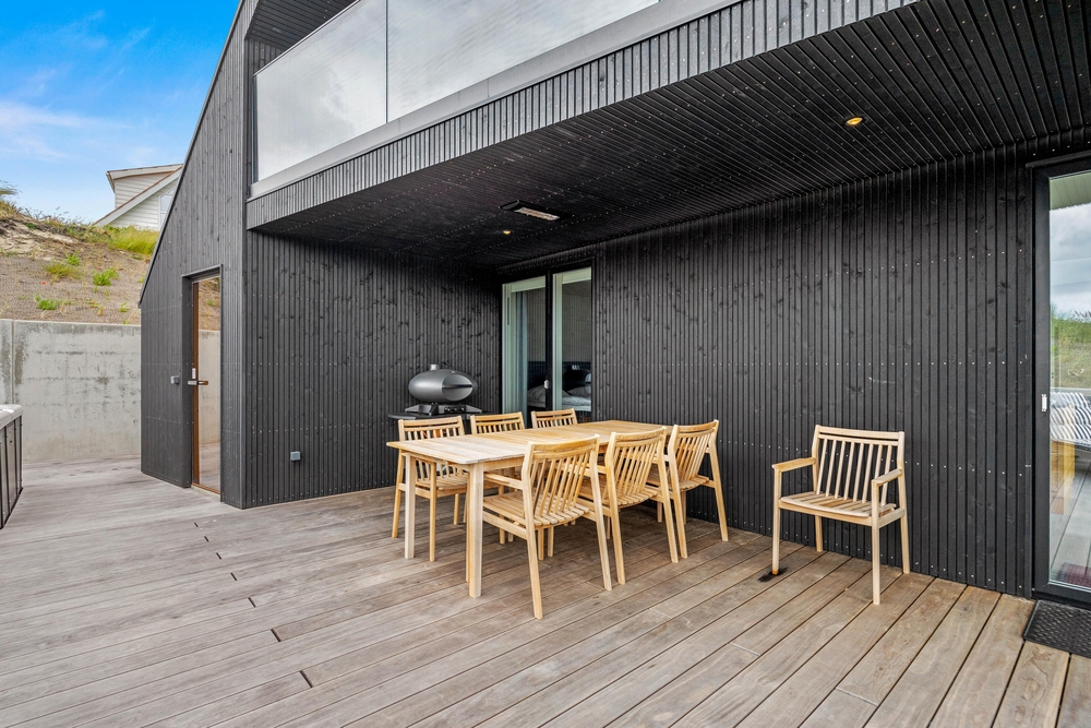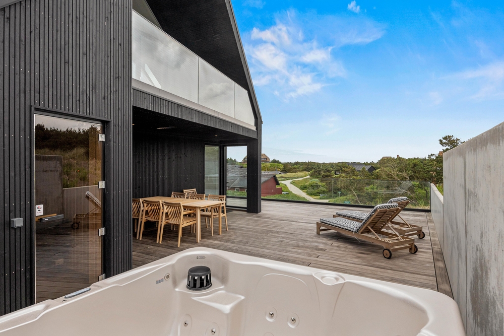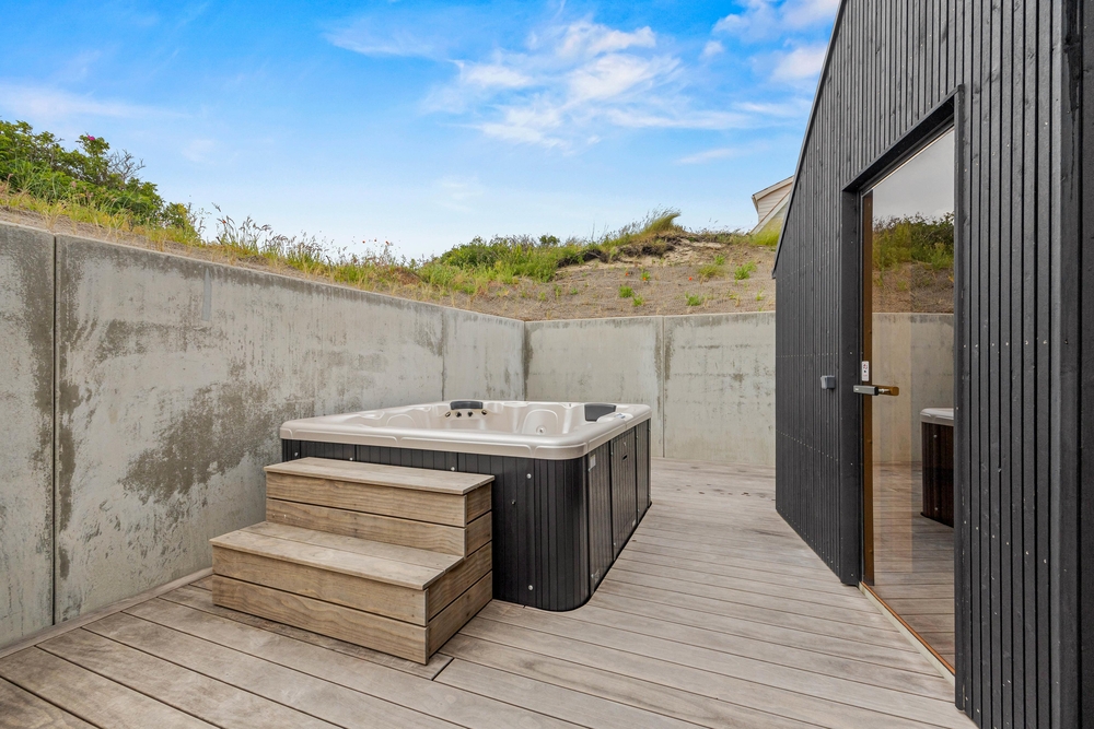 Dette enestående sommerhus er omgivet af en skøn naturgrund og klitgrund, hvor I kan vågne op til beroligende lyde fra naturen. Ydermere kan I nyde den rene luft og det smukke landskab fra udespaen og udebruseren. Skulle I have brug for mere varme, kan I tænde for sommerhusets rummelige sauna, som befinder sig i direkte nærhed af spaen og udebruseren ? det skønneste wellnessområde.