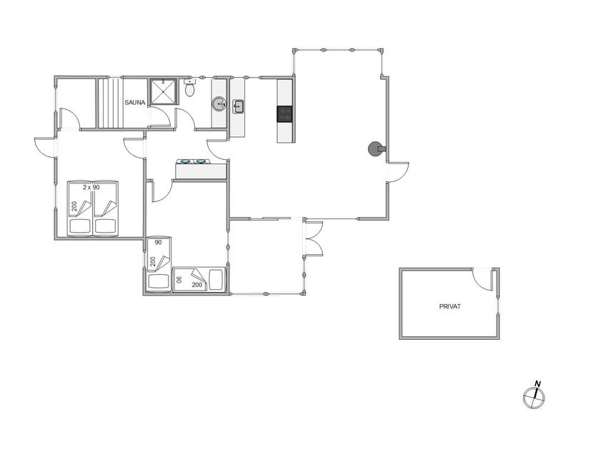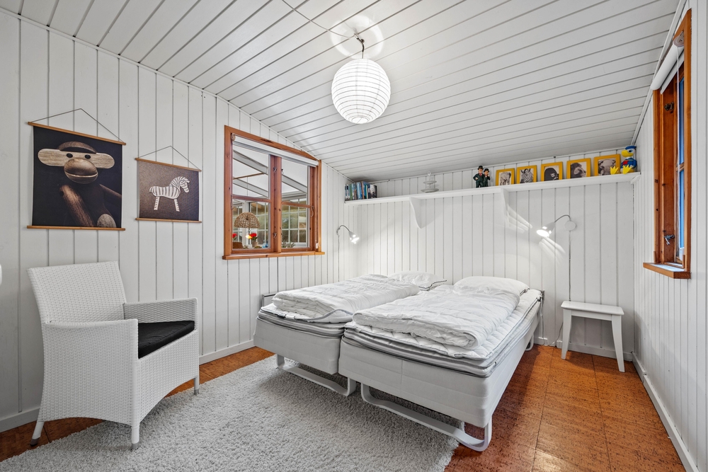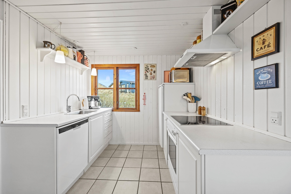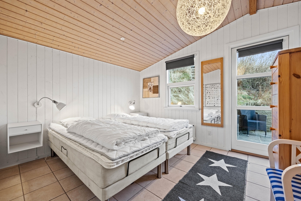 Det charmerende sommerhus er både lyst og venligt indrettet. Her er der sørget for alle praktiske goder, både opvaskemaskine, tørretumbler og vaskemaskine. De 2 soveværelser rummer sovepladser til 4 personer, og fra badeværelset har I adgang til jeres helt egen sauna, hvor I kan slappe af efter en lang dag ved stranden.