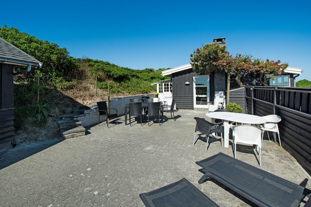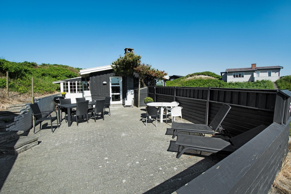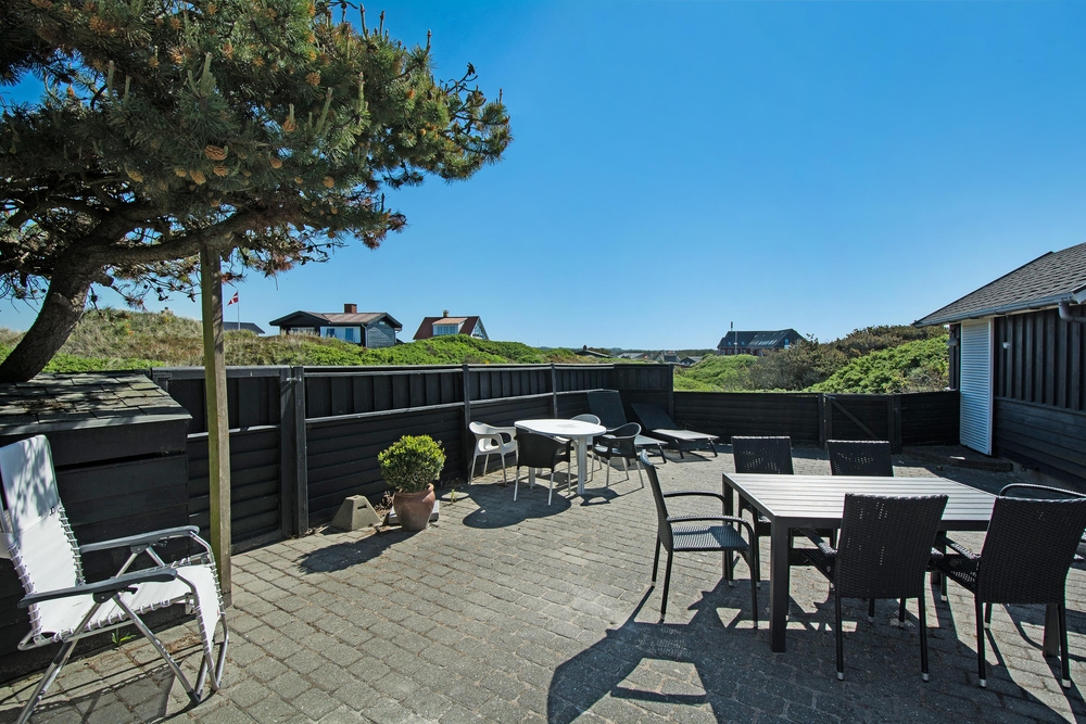 Den skønne terrasse er delvist lukket, så I slipper for at skulle holde opsyn med hunden, mens I slapper af i liggestolene. Med til huset hører en privat klittop, hvorfra I kan se hele vejen til det brusende Vesterhav.