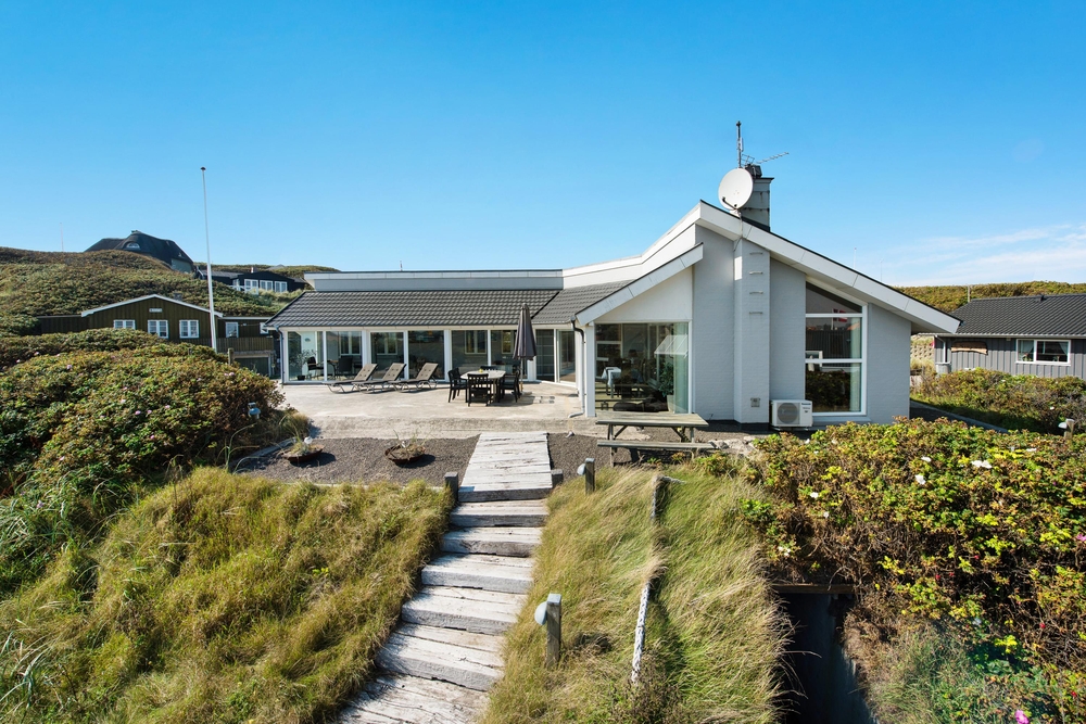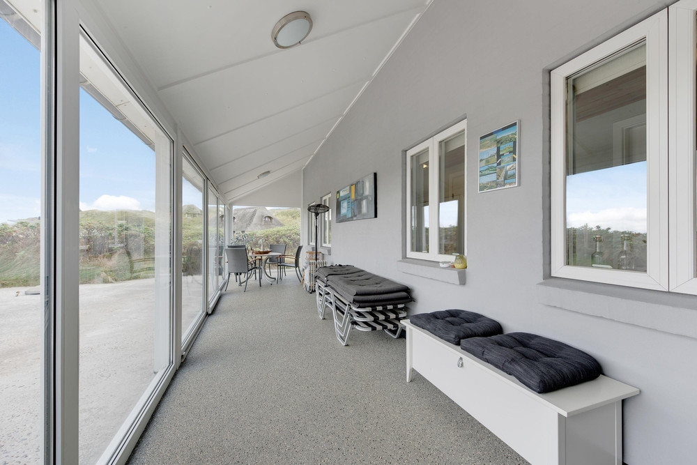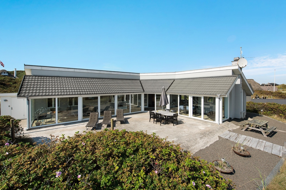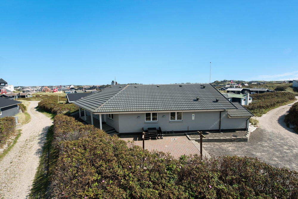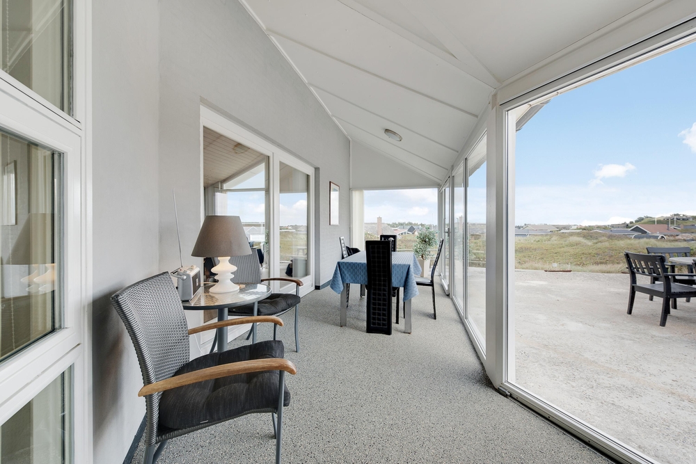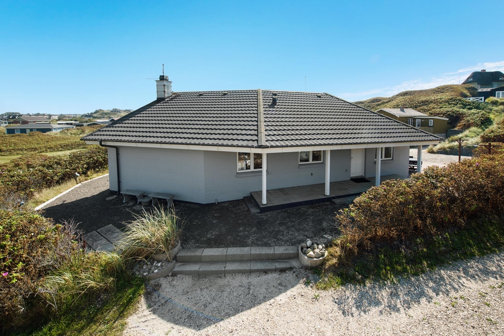 Feriehuset har to dejlige terasser mod nord/øst og syd/vest. Fra terrasserne kan I følge solens gang hele dagen. Ydermere kan I læne jer tilbage i de tilhørende havemøbler og liggestole til sommerhuset samtidig med, at andre står for tilberedning af et lækkert måltid på grillen. Sommerhuset ligger blot et stenkast fra det storslåede Vesterhav og populære badestrand.