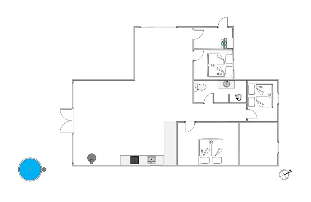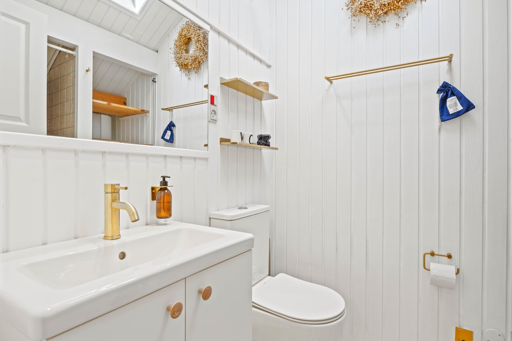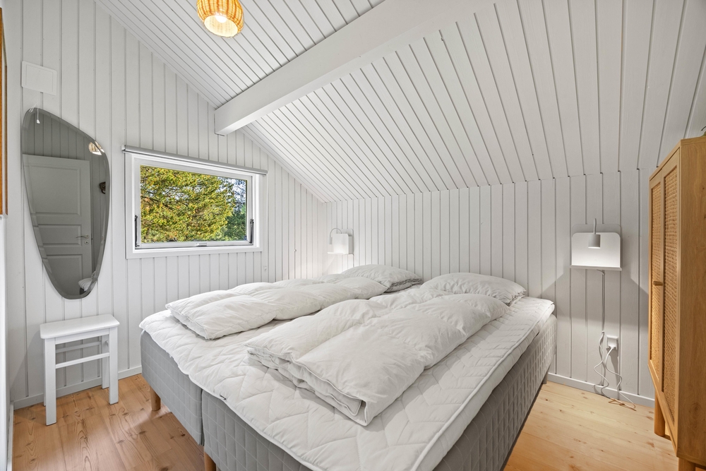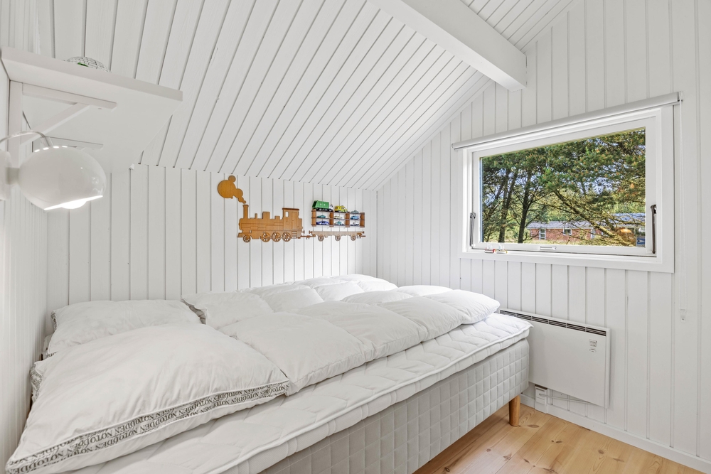 De 3 soveværelser er udstyret med komfortable dobbeltsenge, 1 x på 160×200 cm, 1 x 180×200 og i det sidste værelse på 140×200 cm. Desuden er der barneseng og højstol til de små. Der er vaskemaskine og tørretumbler til jeres rådighed i feriehuset, så I kan opfriske garderoben og håndklæder i løbet af ferien.