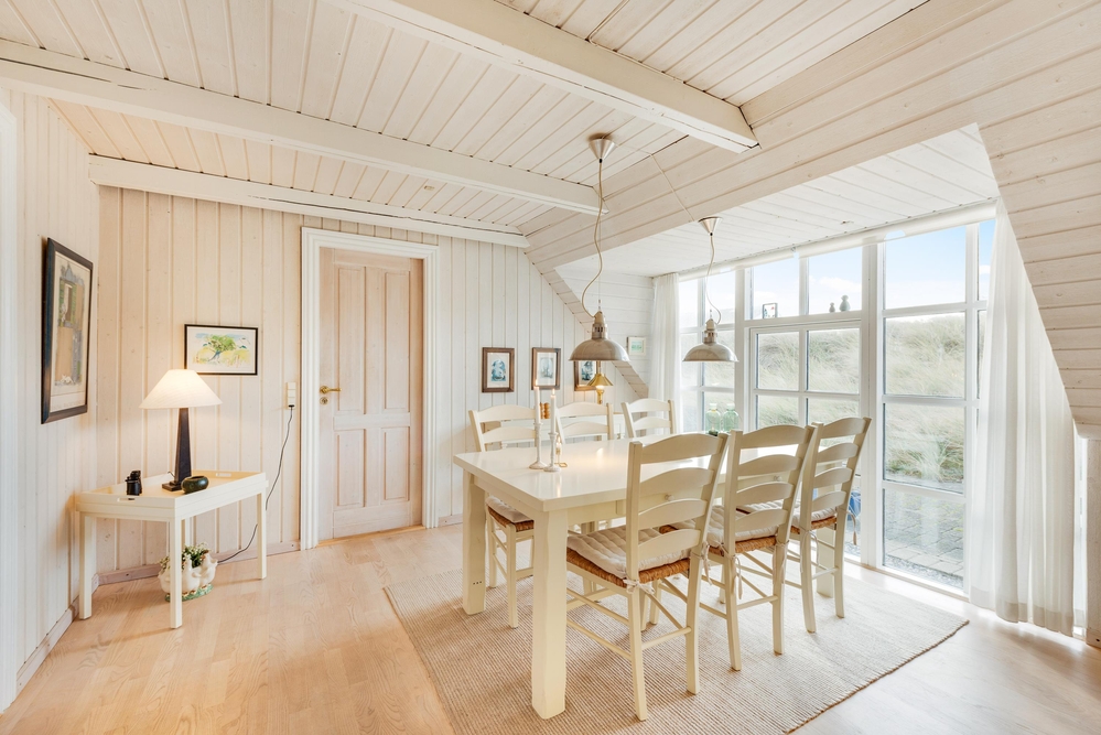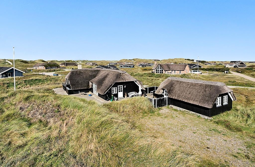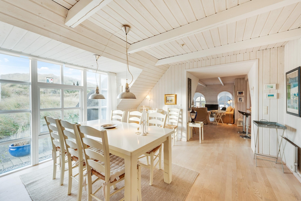 De åbne, delvist overdækkede terrasser med udsigt over klitterne giver masser af plads til, at man kan følge solen rundt om sommerhuset. Derudover er terrasserne også afskærmede, så man kan sidde og nyde sin morgenkaffe i fred og ro.