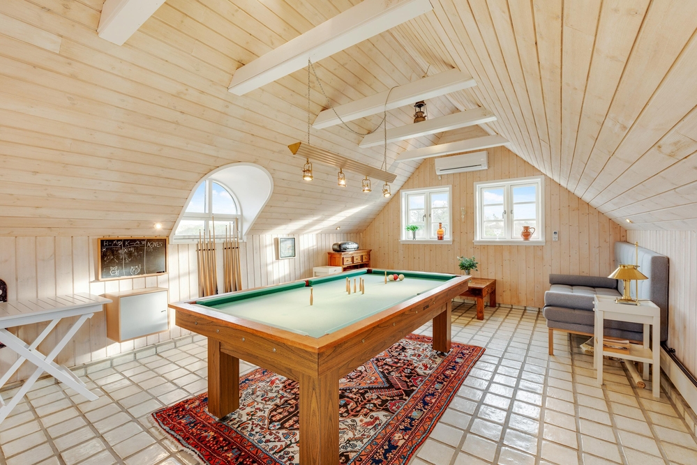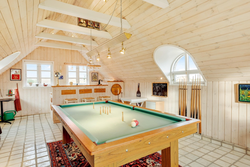 Selv på en regnfuld dag opstår der ingen kedsomhed i dette sommerhus. I kan dyste i sommerhusets aktivitetsrum, hvor der blandt andet er et billardbord? Så kan taberen jo stå for at tilberede diverse kolde drinks fra køleren i baren bagefter.