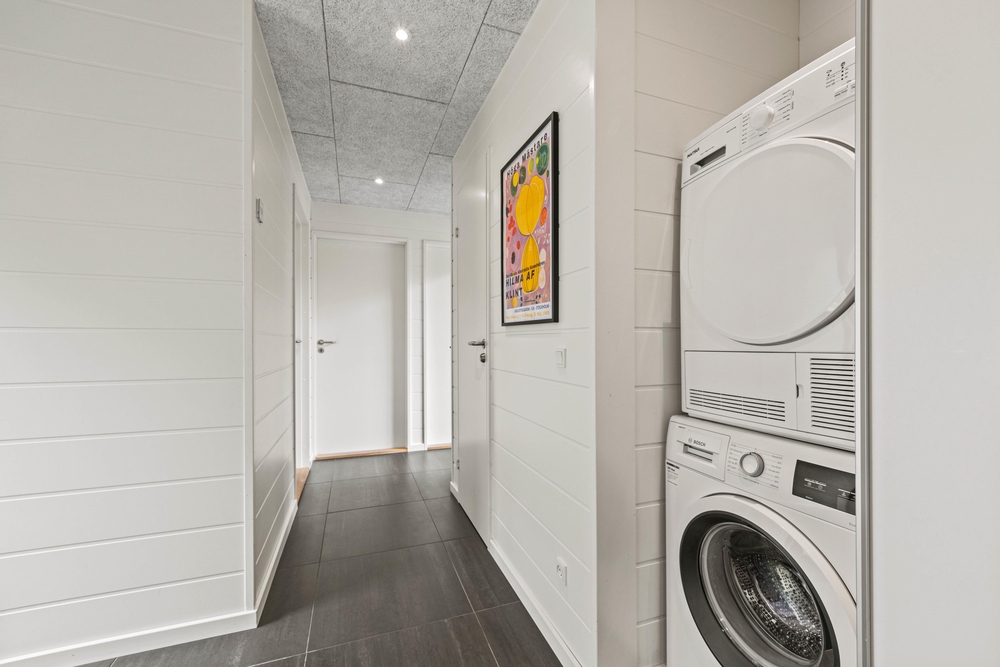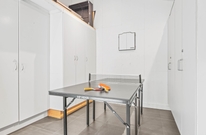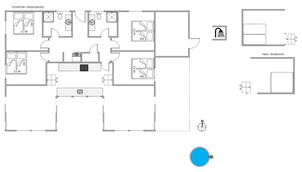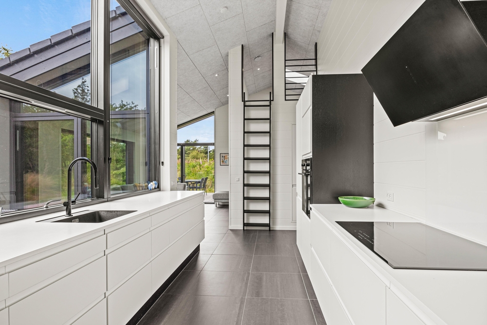 Hjerterummet er det åbne opholdsrum, hvor opholdsstuen, køkken og spisestuen smelter sammen. Et skønt rum med en stilren indretning, et fantastisk lysindfald og god plads til hele familien ? uanset om der skal hygges i sofaen, holdes brætspilsaften eller noget tredje. Ligesom i resten af feriehuset er her også gulvvarme samt en varmepumpe. Fra køkkenet er der stiger op til hemsene, og bagerst i feriehuset findes et aktivitetsrum med bordtennisbord. Her kan I nyde mange sjove stunder og finde feriens bordtennismester.