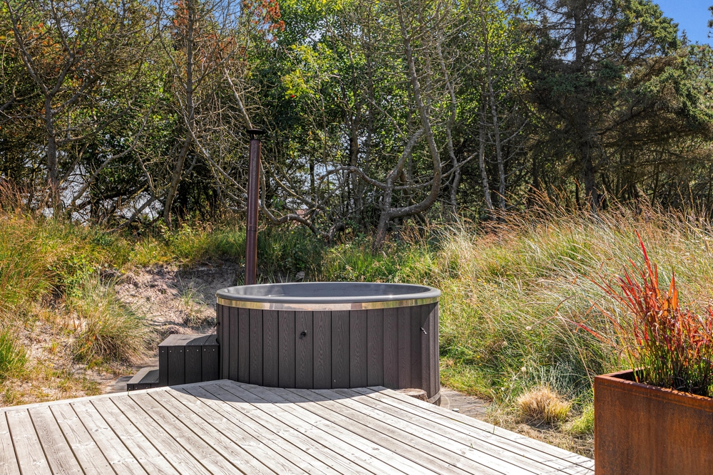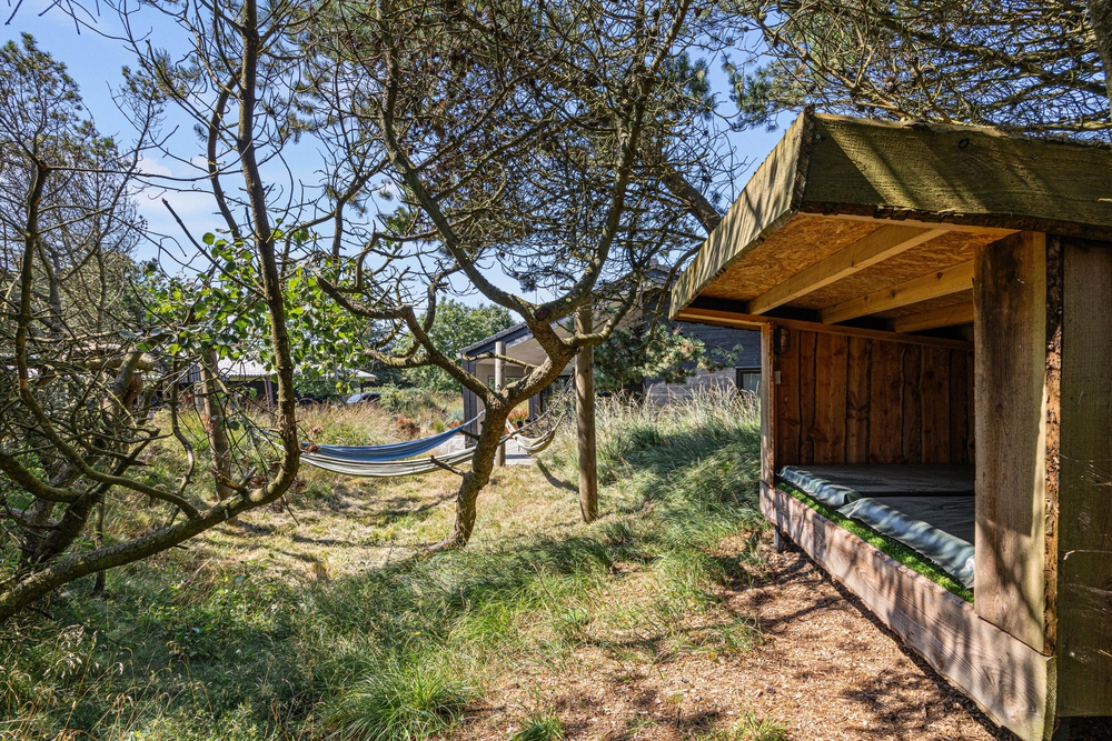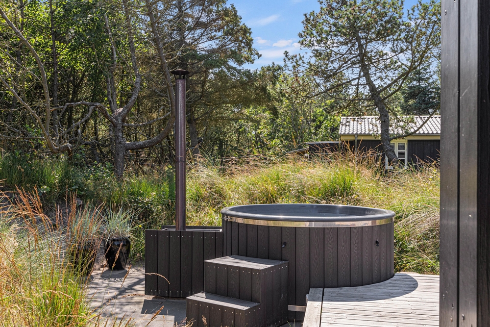 Udenfor venter jer også et varmt vildmarksbad, der indbyder til afslapning efter en dejlig gåtur og brug gerne udebruseren til en frisk afkøling i sommerhalvåret (april til november). Tænd op og mærk det varme vand, mens stjernerne blinker på himlen. Ydermere er der et hyggelige område med hængekøjer.