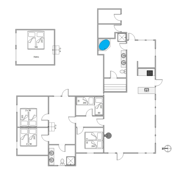 Til gæster, der søger lidt ekstra afslapning, tilbyder sommerhuset en indbydende sauna og en standspa, som er de perfekte steder til at forynge krop og sjæl efter en dag fyldt med aktiviteter i den omgivende natur. I de køligere måneder sørger gulvvarmen i de 2 badeværelser for en konstant følelse af komfort og fremmer jeres velvære.