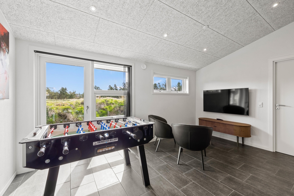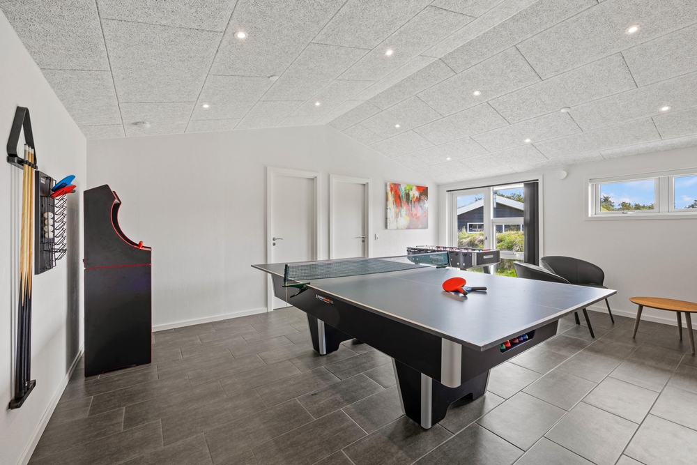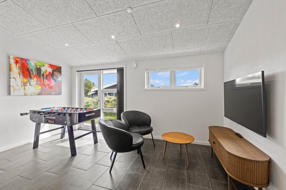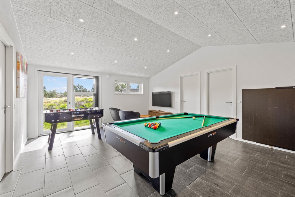 Er I på udkig efter et stort og underholdende sommerhus med plads til leg og lidt luksus, er Solhaven 7 i Blåvand bestemt noget for jer! Her kan op mod 10 feriegæster og 3 kæledyr holde en fantastisk ferie. Her er plads til timevis af sjov i aktitvitetsrummet med bl.a. poolbord eller feriestemning på terrassen med grillaftener og udespaen.