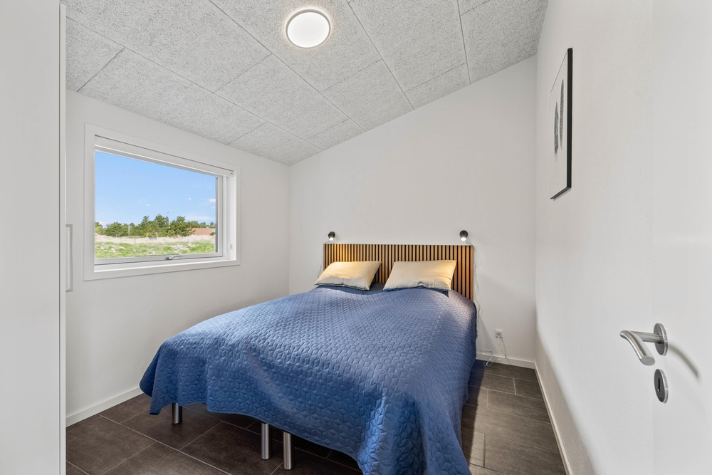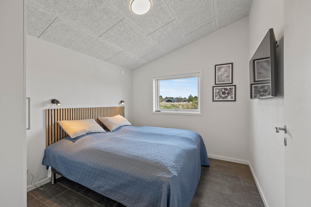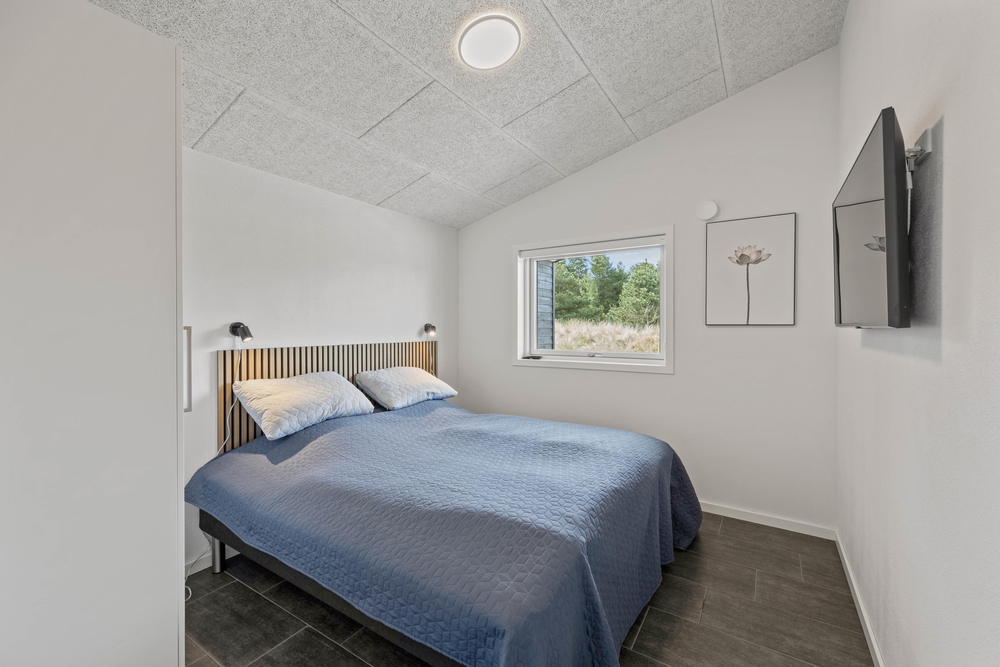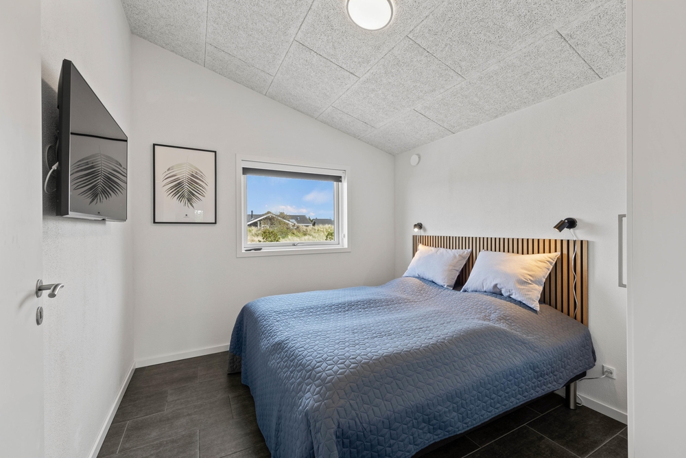 I soveværelserne mangler der heller intet. Alle fem værelser har en dobbeltseng, 180×200, og på tre af værelserne findes også et fjernsyn.