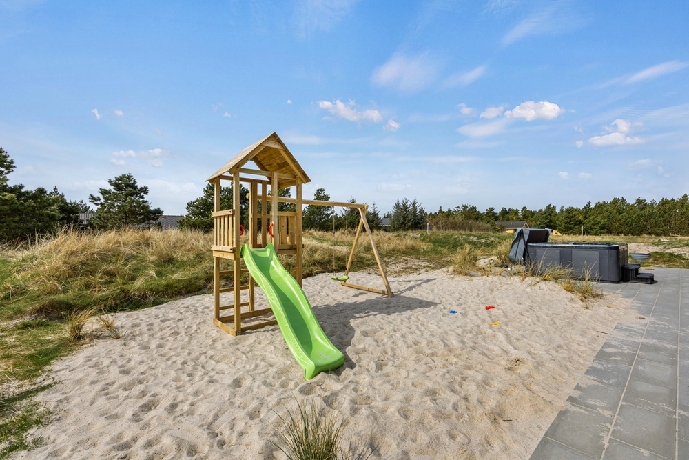 I har desuden også både parasol og solvogne til rådighed, så forældrene kan ligge i solen og holde øje med børnene, som leger i den store sandkasse eller på gynger. Eller måske skal I have en dyst på den lille beachvolleybane eller i en fodboldkamp ved de to små fodboldmål?