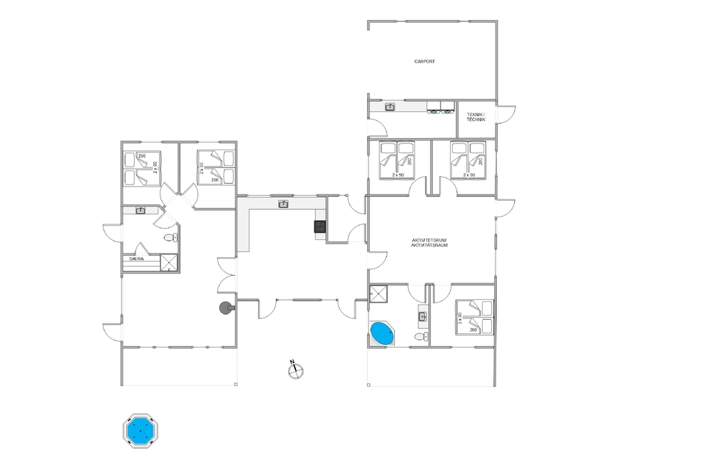 Solhaven 7 byder med sine 201 kvadratmeter på en smagfuld indretning og funktionel planløsning, hvor der er plads til hele familien. Hele feriehuset er indrettet i rolige og natur-materialer samt belagt med klinkegulv med gulvvarme. Planløsningen byder bl.a. på køkkenalrum i forbindelse med stue, to badeværelser, fem soveværelser og et stort aktivitetsrum.