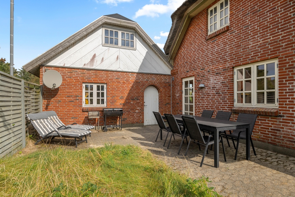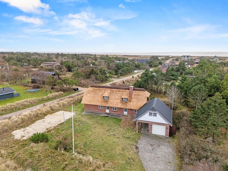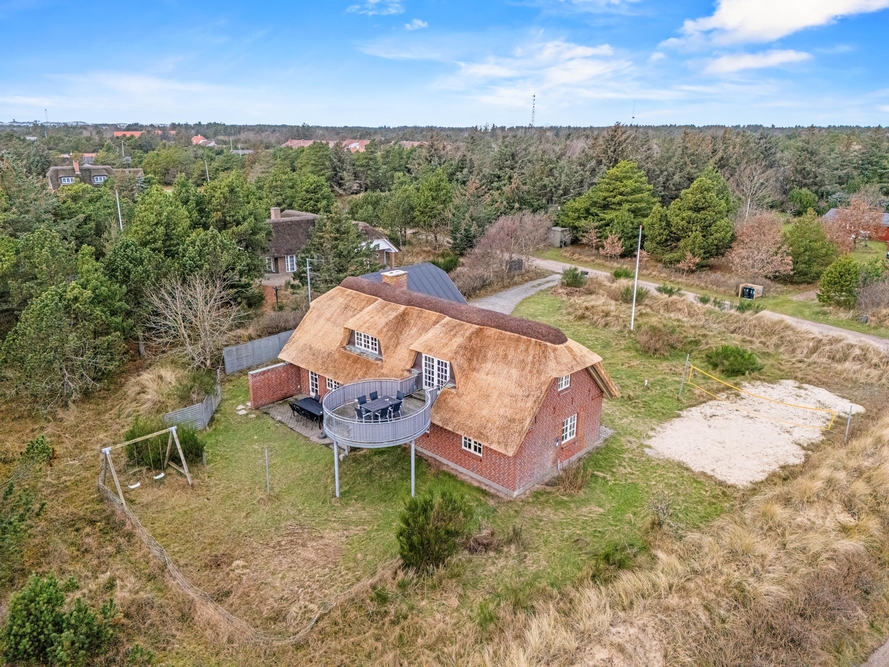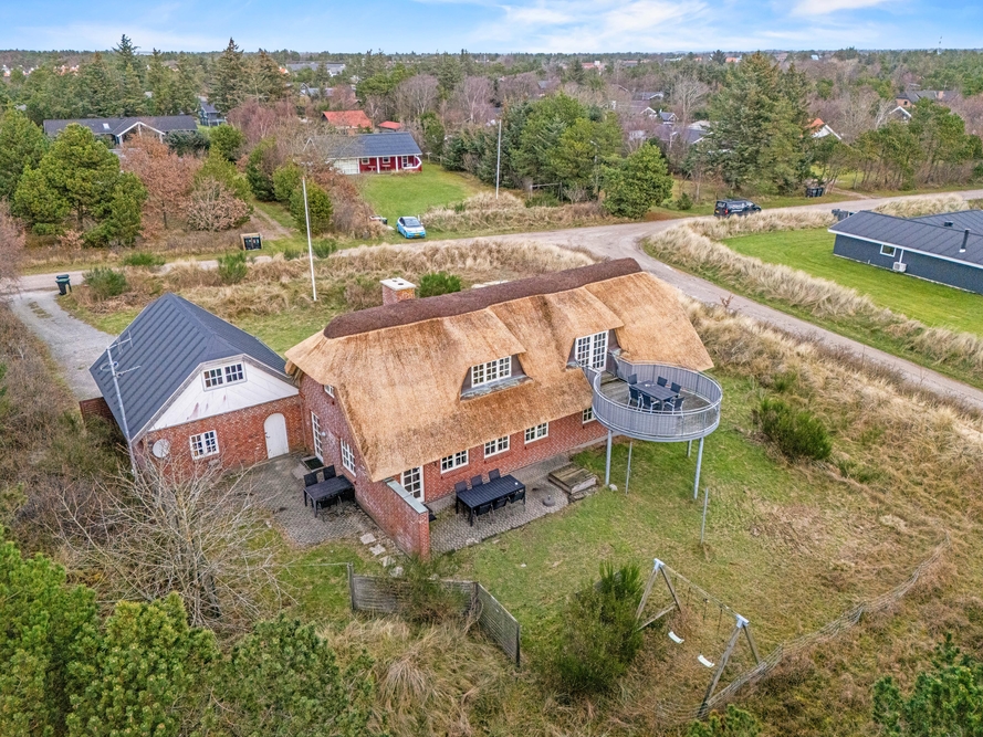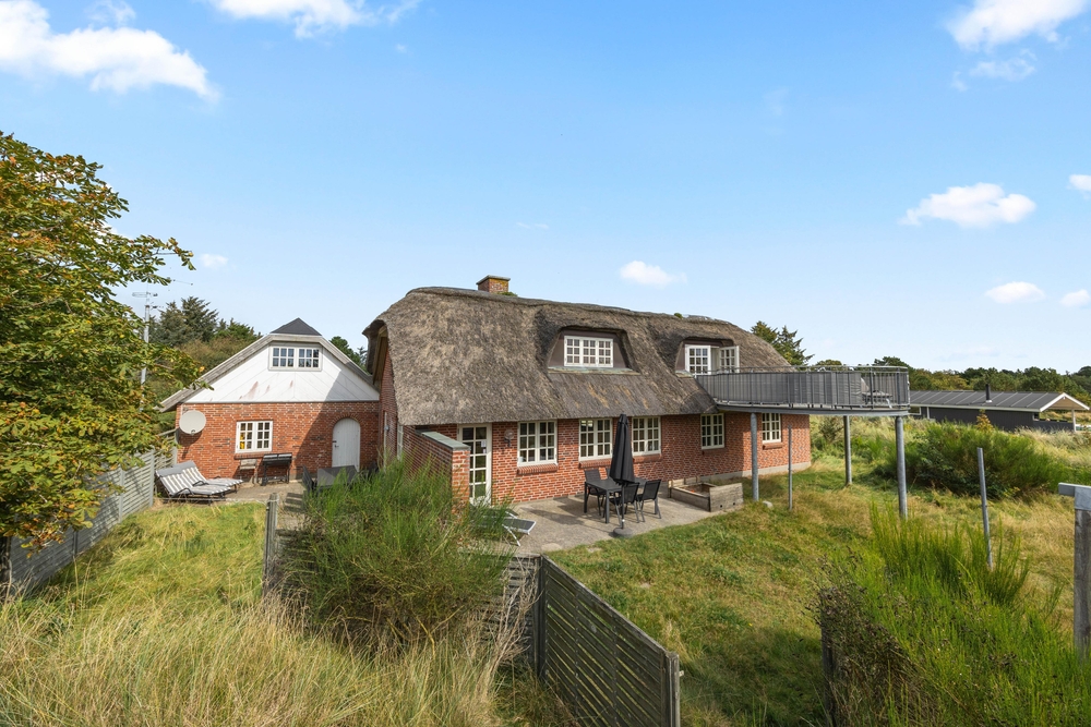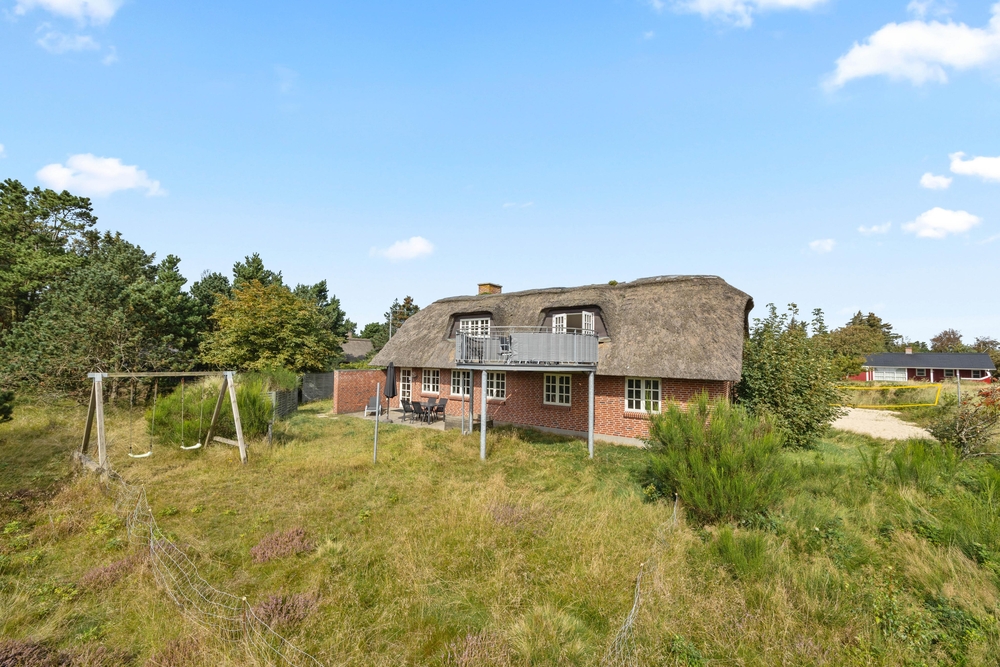 Dette rummelige og praktisk indrettede feriehus med balkon ligger centralt i Blåvands bymidte. Her er man tæt på Vesterhavet, gode butikker og caféer. Det stråtækte feriehus har plads til 10 gæster og en hund. Et fint feriehus i to plan velegnet til ferie med børn.