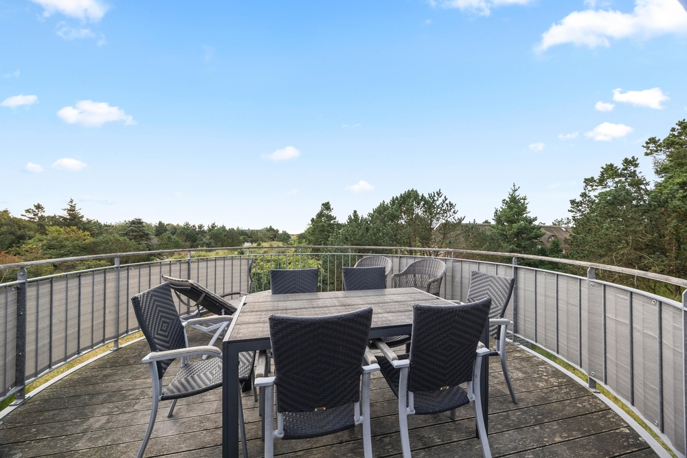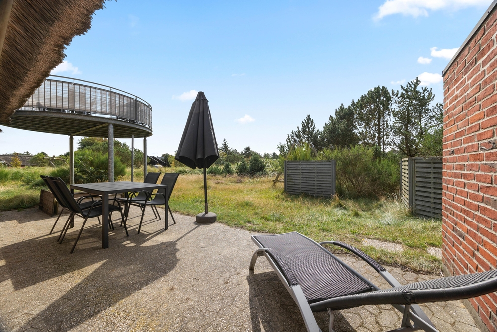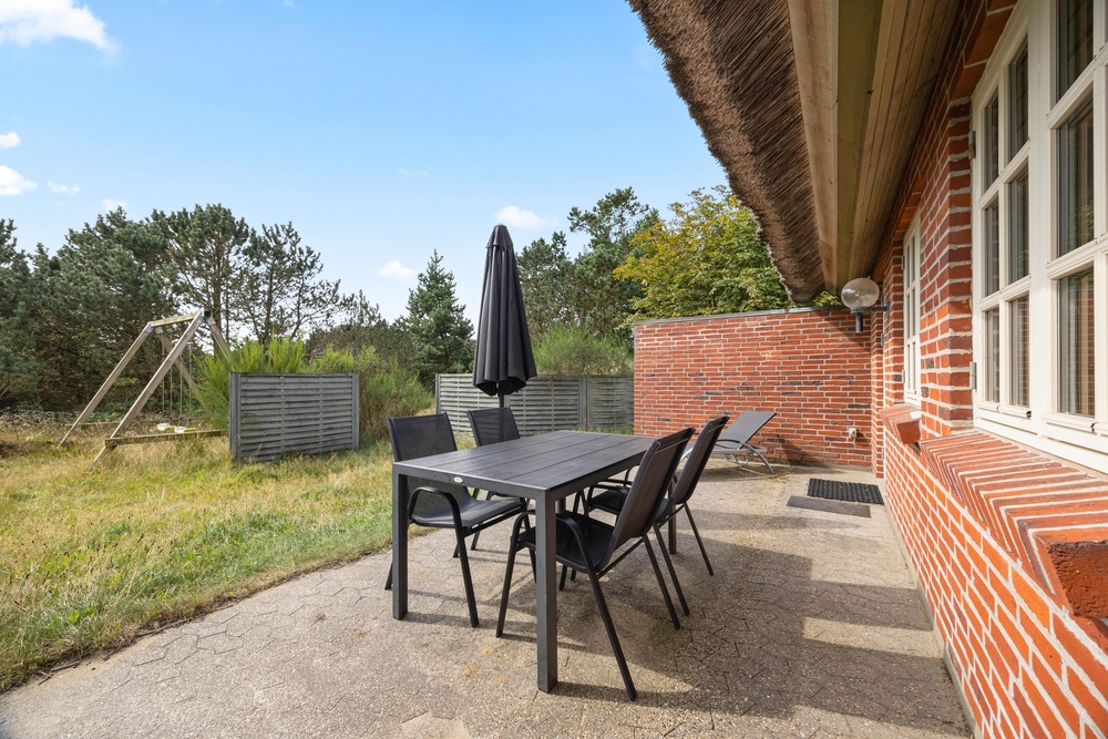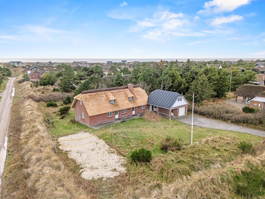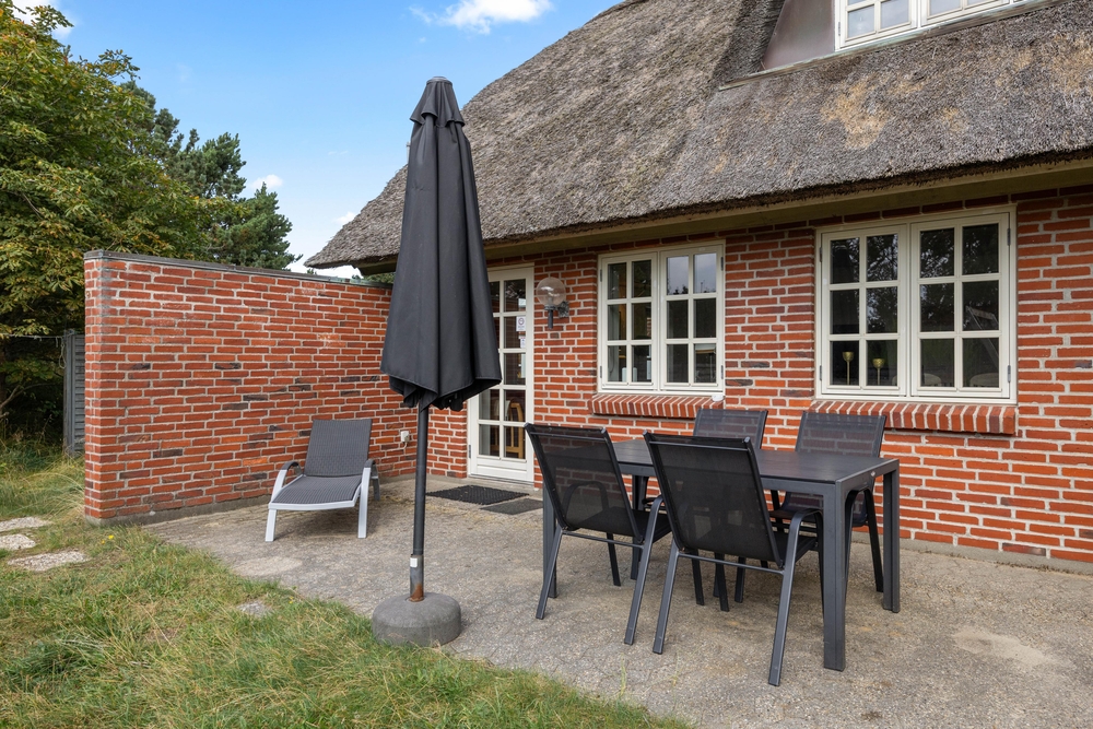 Dette rummelige og praktisk indrettede feriehus med balkon ligger centralt i Blåvands bymidte. Her er man tæt på Vesterhavet, gode butikker og caféer. Det stråtækte feriehus har plads til 10 gæster og en hund. Et fint feriehus i to plan velegnet til ferie med børn.