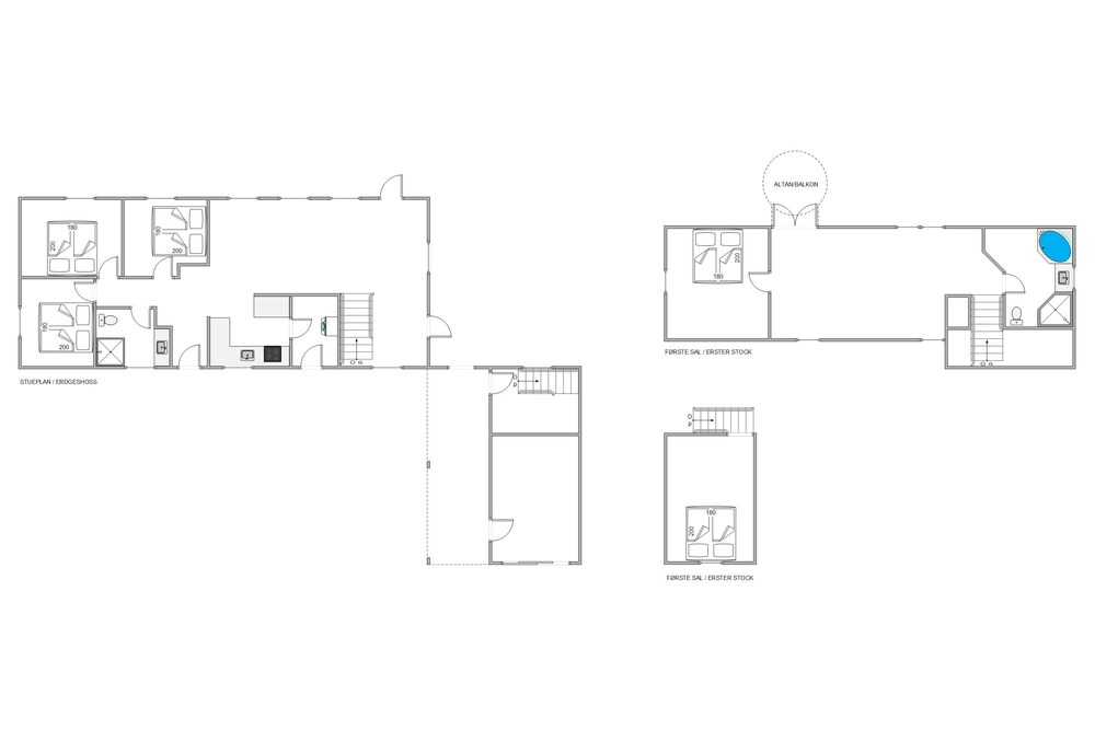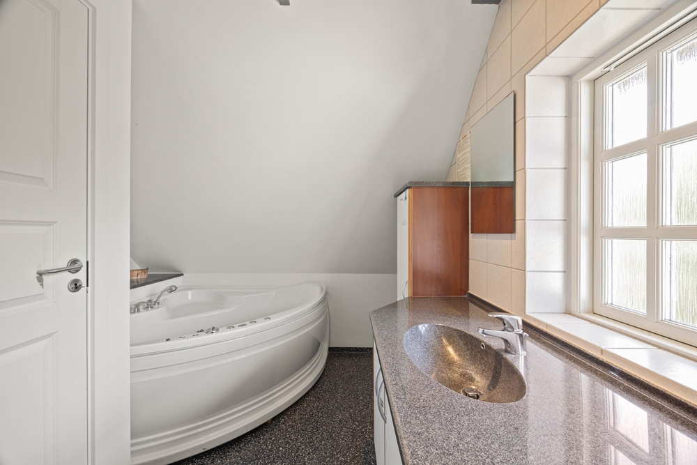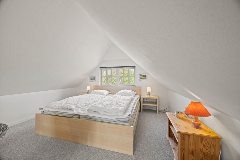 Her er fem fine soveværelser samt to badeværelser ? et på hver etage. På førstesalen findes det største og her er der et boblebad. Nyd en afslappende stund i det varme vand. Fra førstesalen også kan I tilgå den skønne altan, hvorfra der er den skønneste udsigt over området. Her er så dejligt at sidde med en frisk kop kaffe om morgenen.