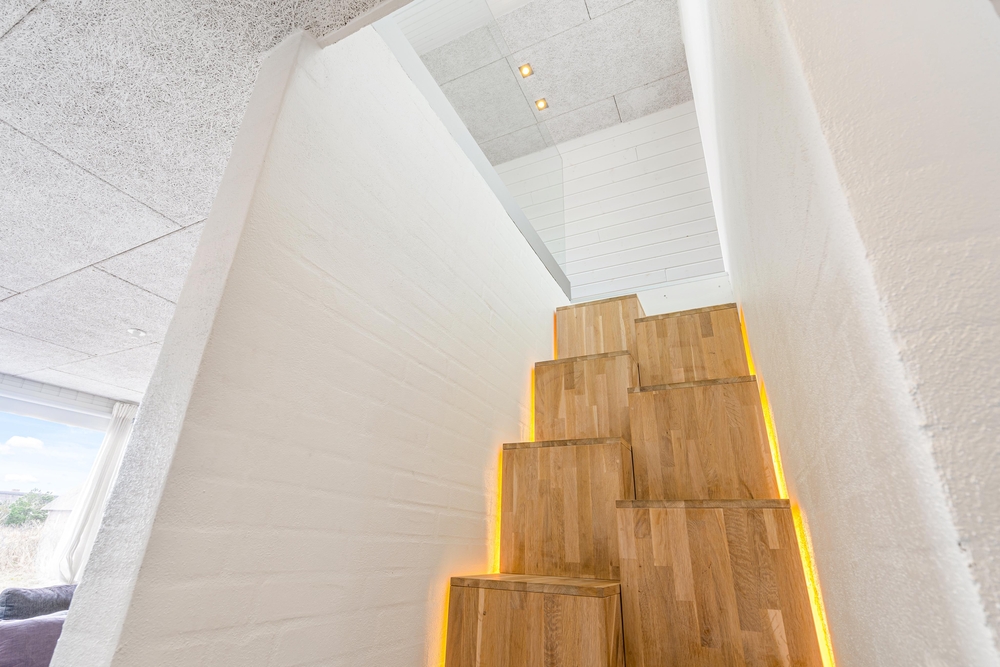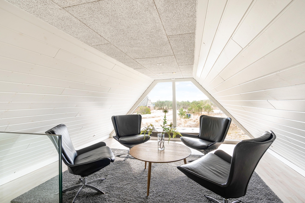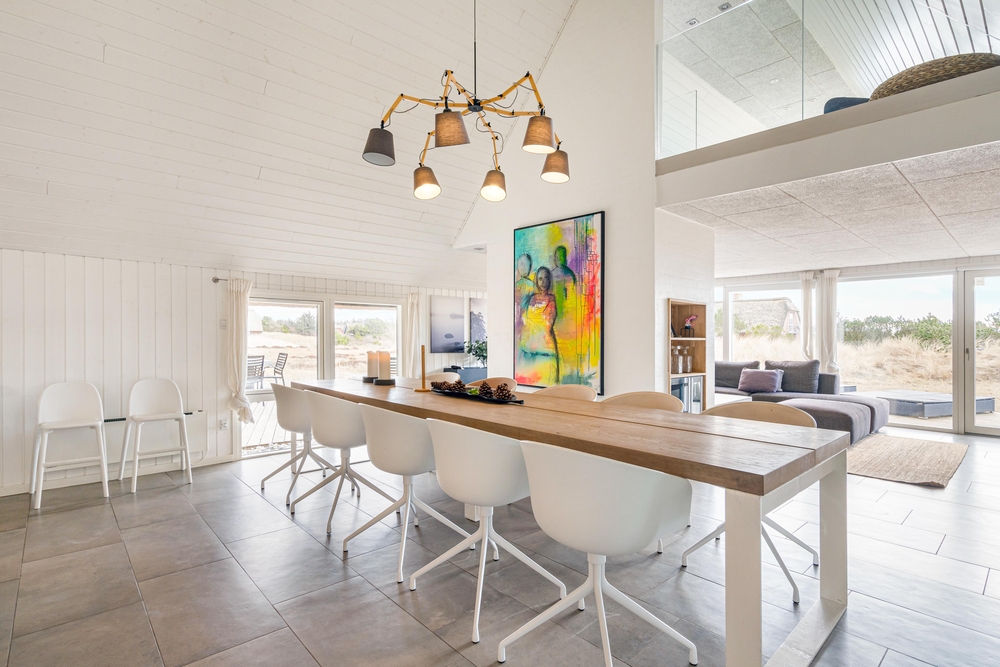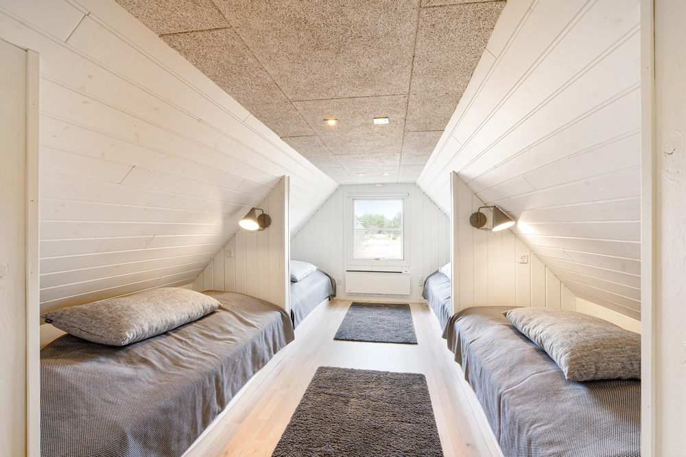 Det flotte, åbne køkkenalrum lægger op til mange timers samvær med gode snakke over køkkenets barområde ? måske med et koldt glas hvidvin direkte fra vinkøleren? Sommerhusets sovepladser fordeler sig på fire gode soveværelser, alle med dobbeltseng og eget fjernsyn, mens de sidste sovepladser er at finde på hemsen. Fra hemsen kan I desuden skimte havet, som ligger kun 400 meter væk.