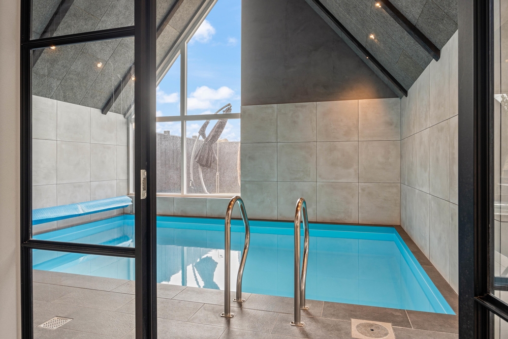 Et af de helt store plusser ved sommerhuset er den moderne pool, som både indbyder til afslapning og til timevis af sjov og plask i det blå vand, og med den udendørs spa og sauna, er der alle muligheder for at få wellness som en del af ferien.