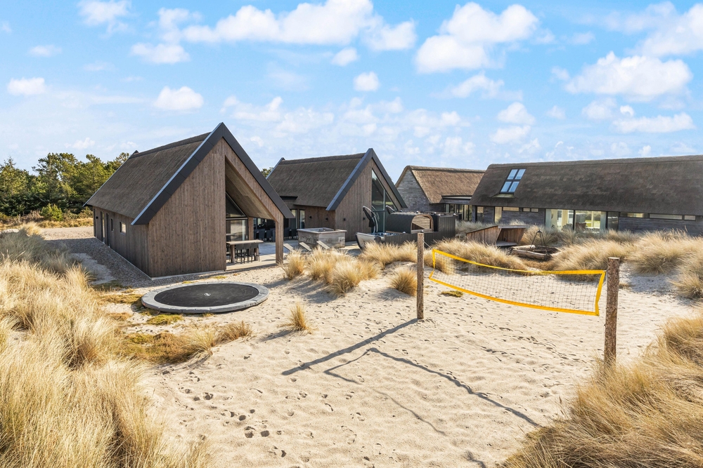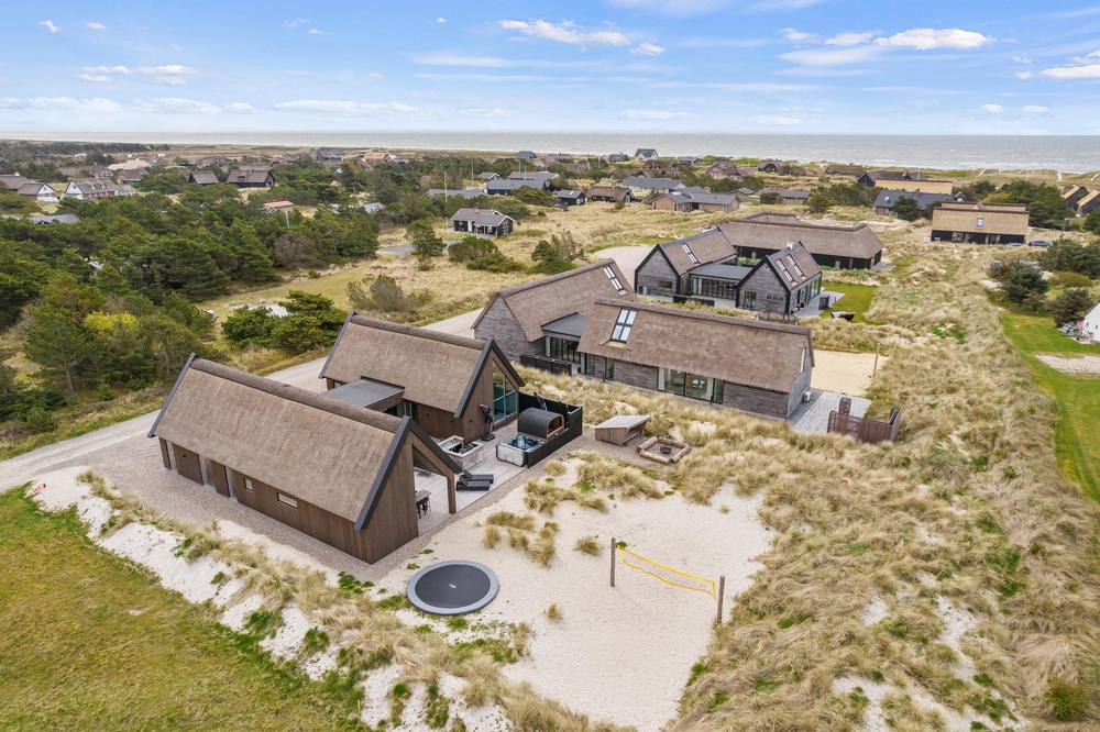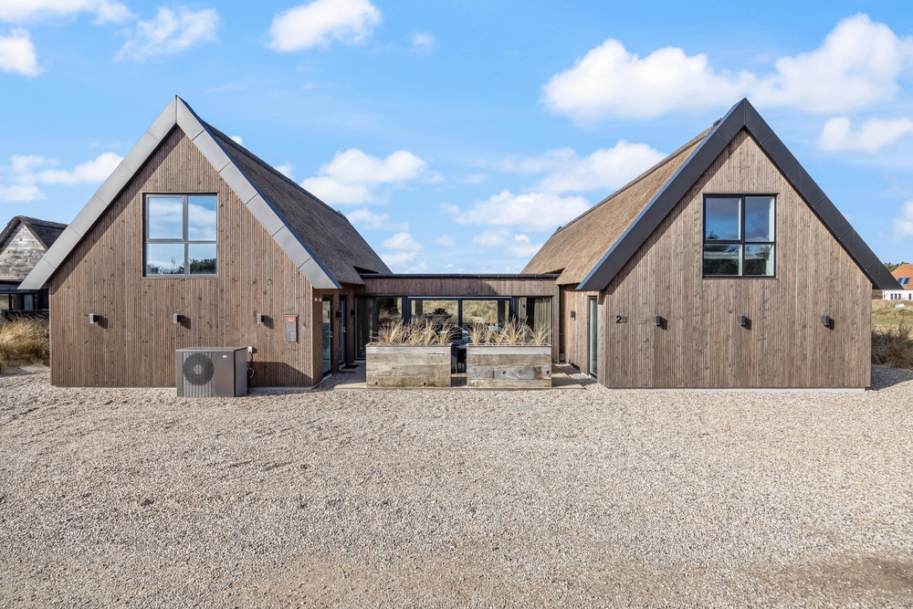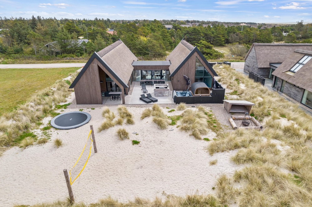 Det moderne poolhus på Sønder-Vasevej 2B i Blåvand emmer af luksus. Sommerhuset er 250 m2 stort og er bygget i 2021, og her finder I mange gode faciliteter såsom et stort aktivitetsrum, pool, spa og udendørssauna. Der er plads til 12 personer (de 2 sofaer på den ene hems er sovesofaer), og sommerhuset egner sig derfor godt til en ferie med flere familier eller en stor vennegruppe. Det dejlige sommerhus ligger blot et stenkast fra indkøbsmuligheder og den vestjyske sandstrand, hvor I kan få en masse timer til at gå.