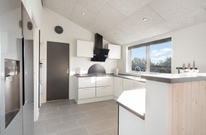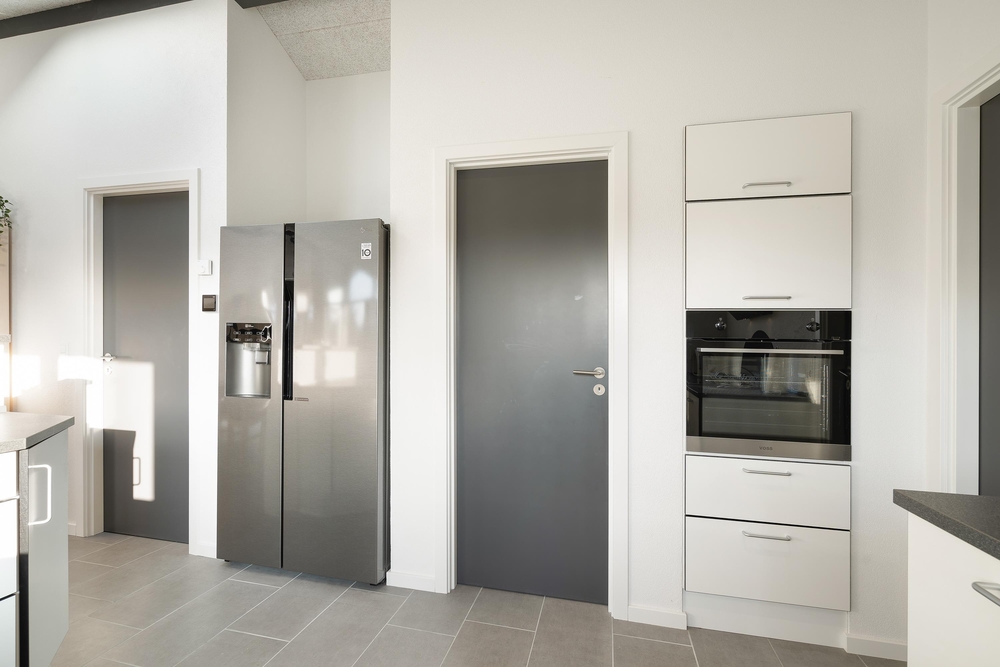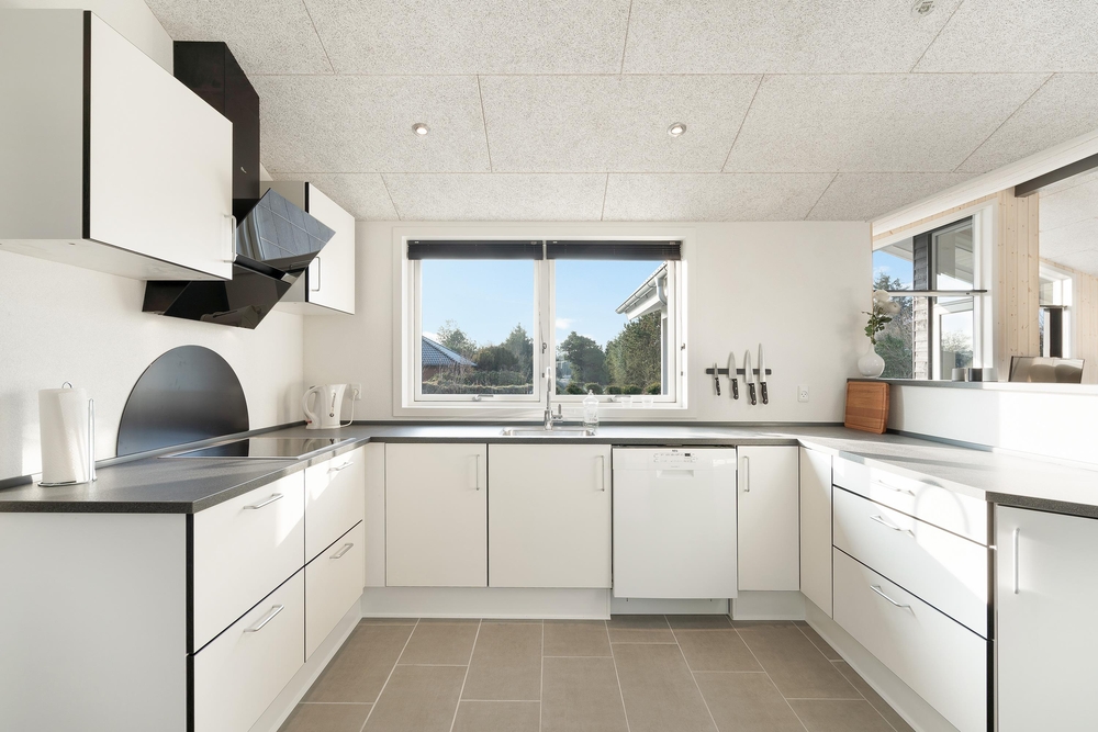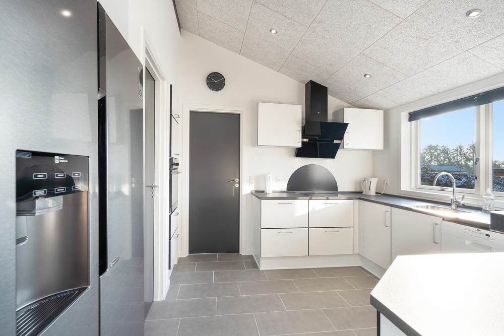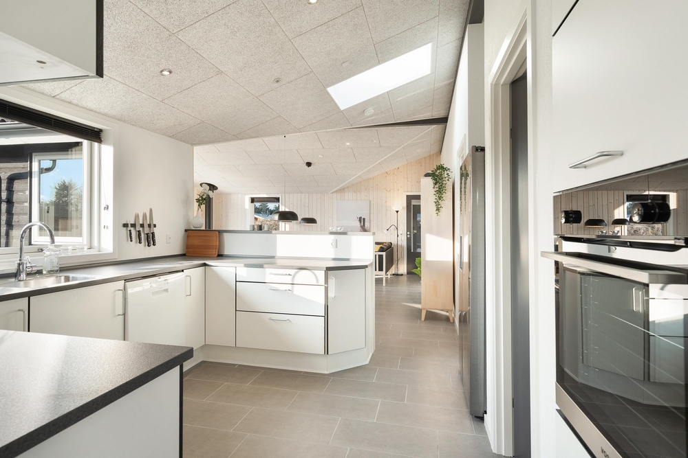 Den gode åbenplanløsning, hvor køkken og spiseafdeling er integreret i stuen skaber plads til samvær om madlavningen, ? måske skal der trylles lidt med lokale råvarer som friskplukkede svampe fra skoven, vildtkød eller en lækker fiskeret? Det store amerikanske køleskab med ismaskine er især på varme sommerdage et hit og så er det iøvrigt oplagt, at rykke madtilberedelsen ud i det smarte udekøkken på terrassen.