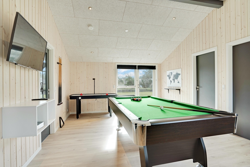 Et spil billard er både sjovt og afslappende især for konkurrence-sjælene i huset, imens andre måske heller hygger sig med en gang wellness i husets sauna og spa, og således får tanket ny energi. Især for familien med børn er det både rart og vigtigt, at der i huset ud over opvaskemaskinen er både vaskemaskine og tørretumbler, ? og desuden børneseng og højstol i huset.