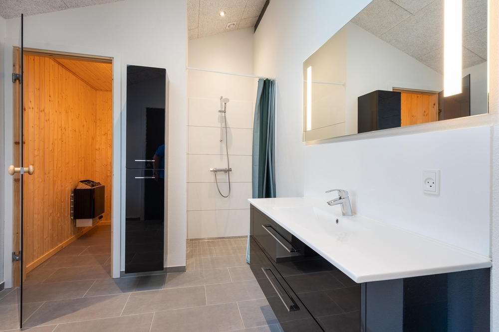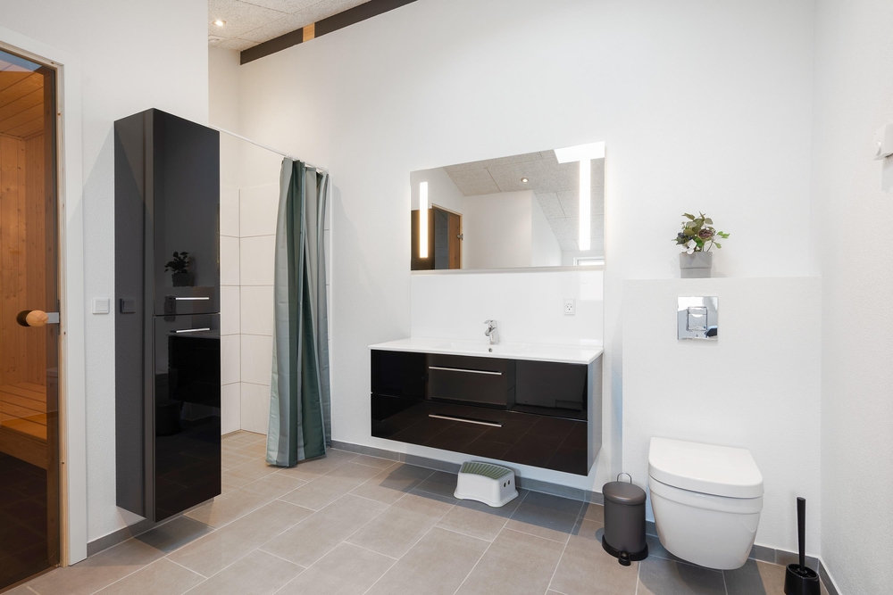 Med 4 rigtigt gode soverum og 2 badeværelser, det ene med sauna og spa ? er her god plads til hygge og afslapning. Huset opvarmes med energirigtig jordvarme og har et behageligt indeklima.
