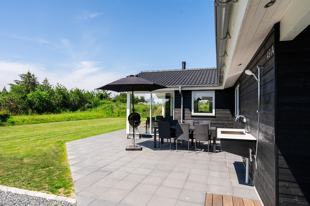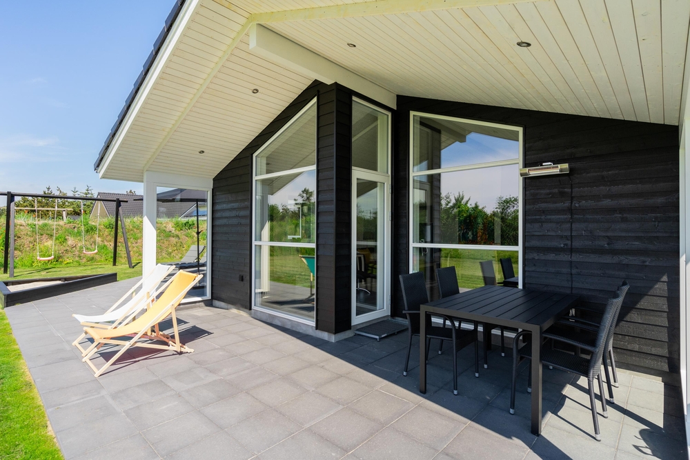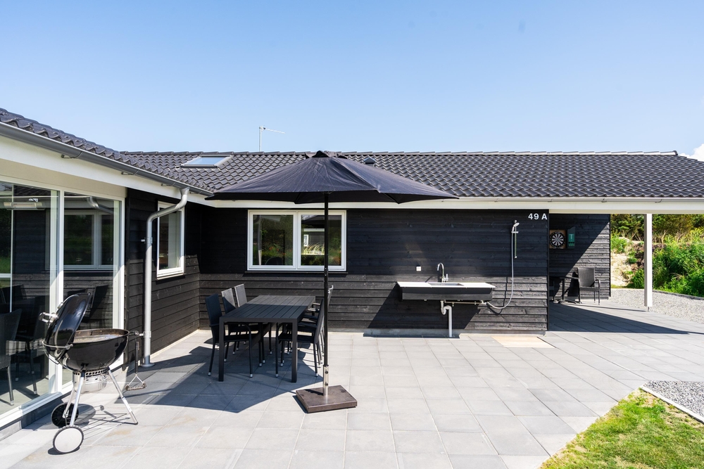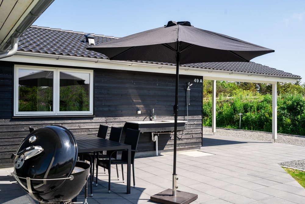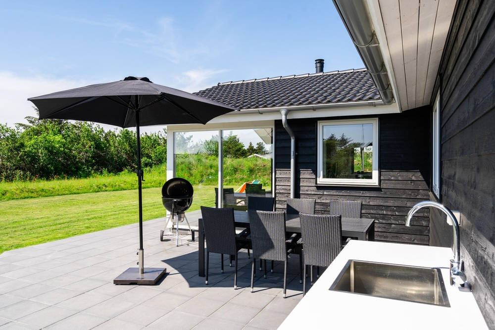 Terrasserne er det sted, hvor vi celebrerer udelivet ? her kan der slappes af og tilberedes mad i udekøkkenet eller på grillen. Så de små ikke keder sig, når mor og far slapper af, er der sandkasse og gynger på husets grund. Bemærk, at udebruseren kun er til rådighed fra 1. april til 31. oktober.