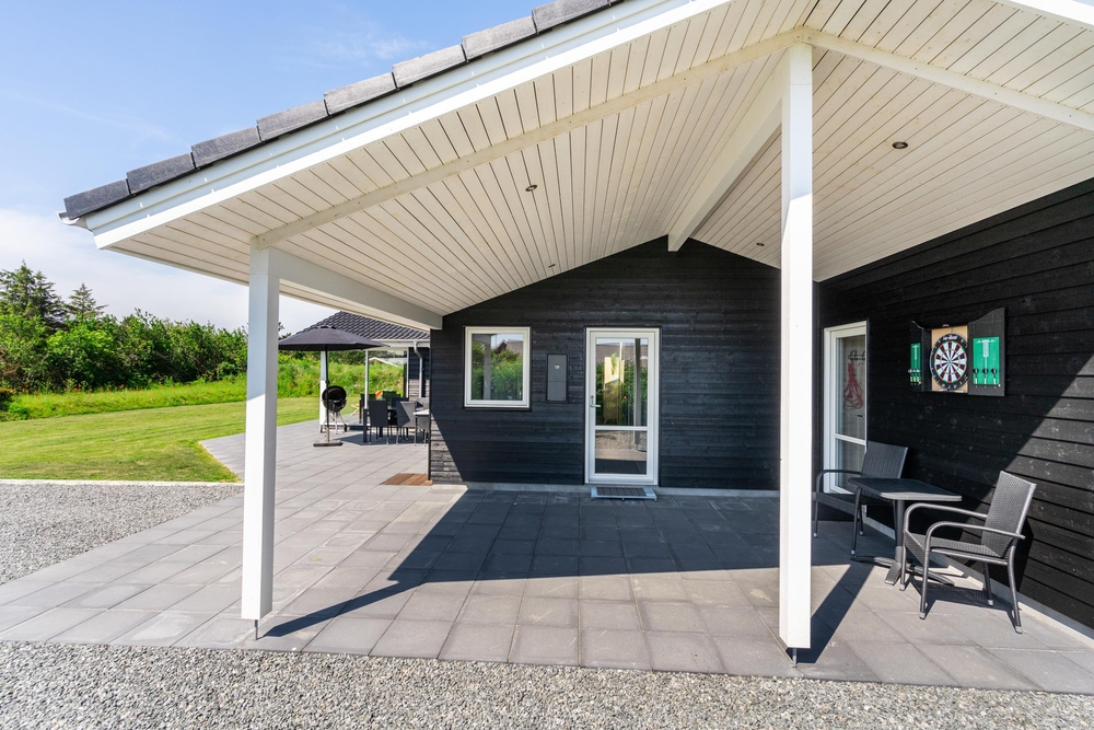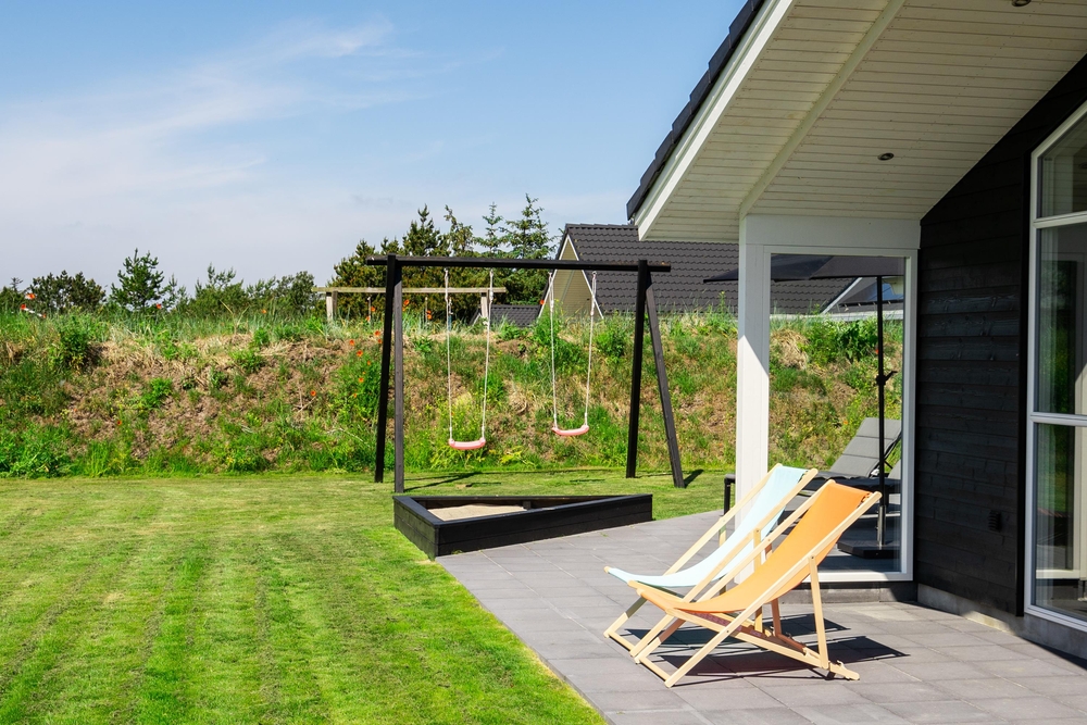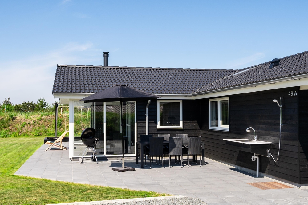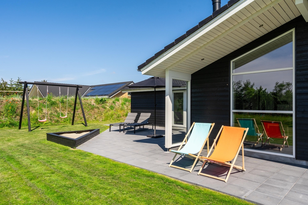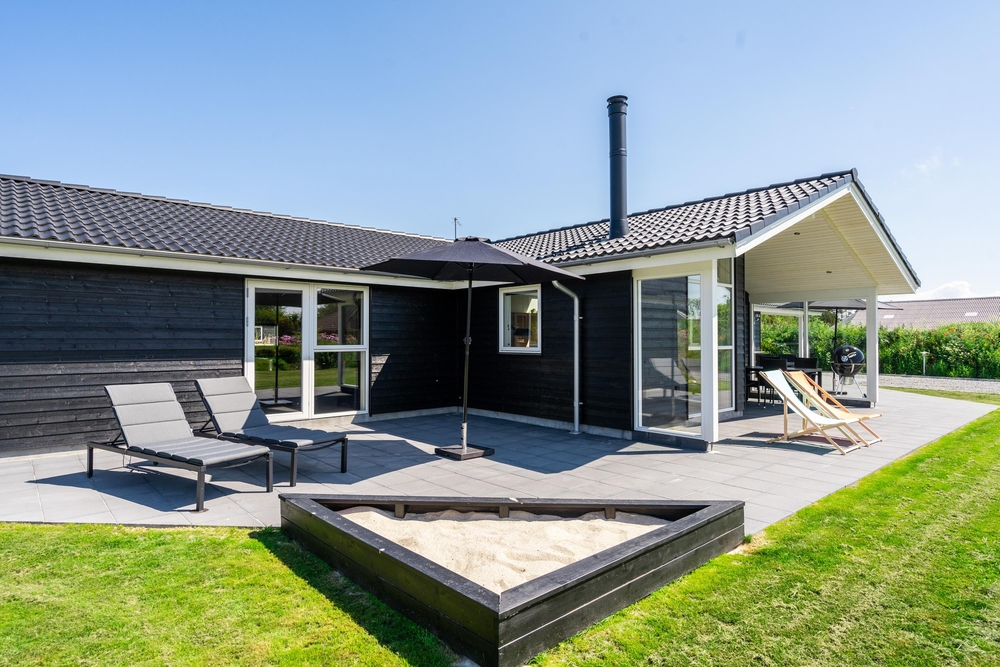 Terrasserne er det sted, hvor vi celebrerer udelivet ? her kan der slappes af og tilberedes mad i udekøkkenet eller på grillen. Så de små ikke keder sig, når mor og far slapper af, er der sandkasse og gynger på husets grund. Bemærk, at udebruseren kun er til rådighed fra 1. april til 31. oktober.