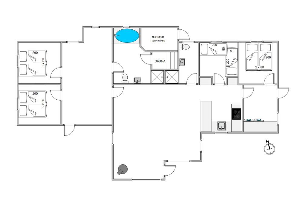Perfekt beliggende i Blåvand med kun 400 m til centrum og knap 600 meter til de skønne hvide sandstrande står dette lækre i 2019 nyopførte hus klar til jeres ferie. Huset på Sønder-Vasevej 49a det perfekte valg til en skøn ferie med stilfuld komfort til 8 personer. Det er pga. sin rumopdeling super godt egnet både til familien og til en skøn ferie med flere vennepar.