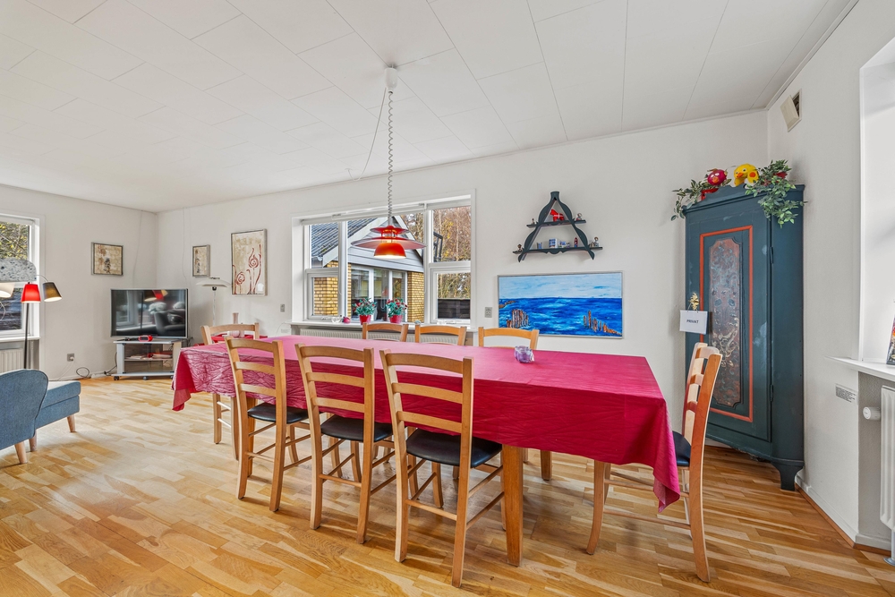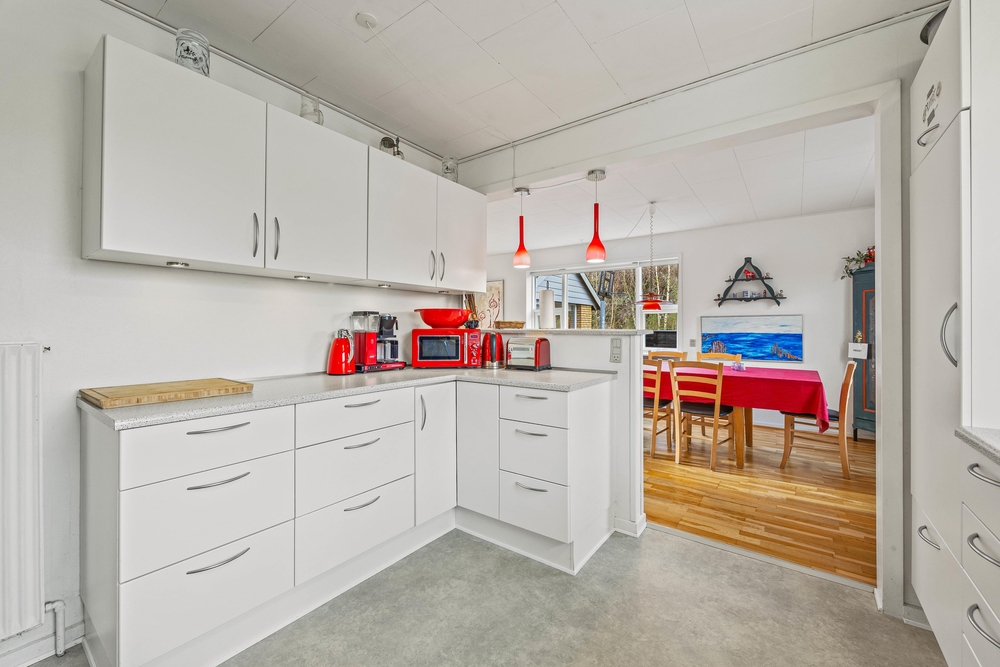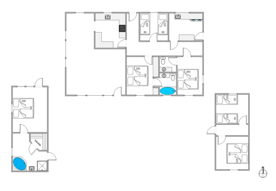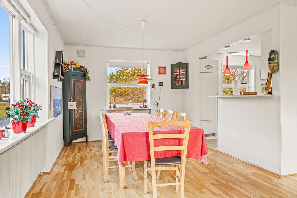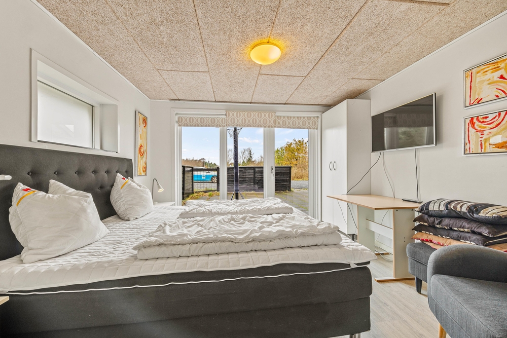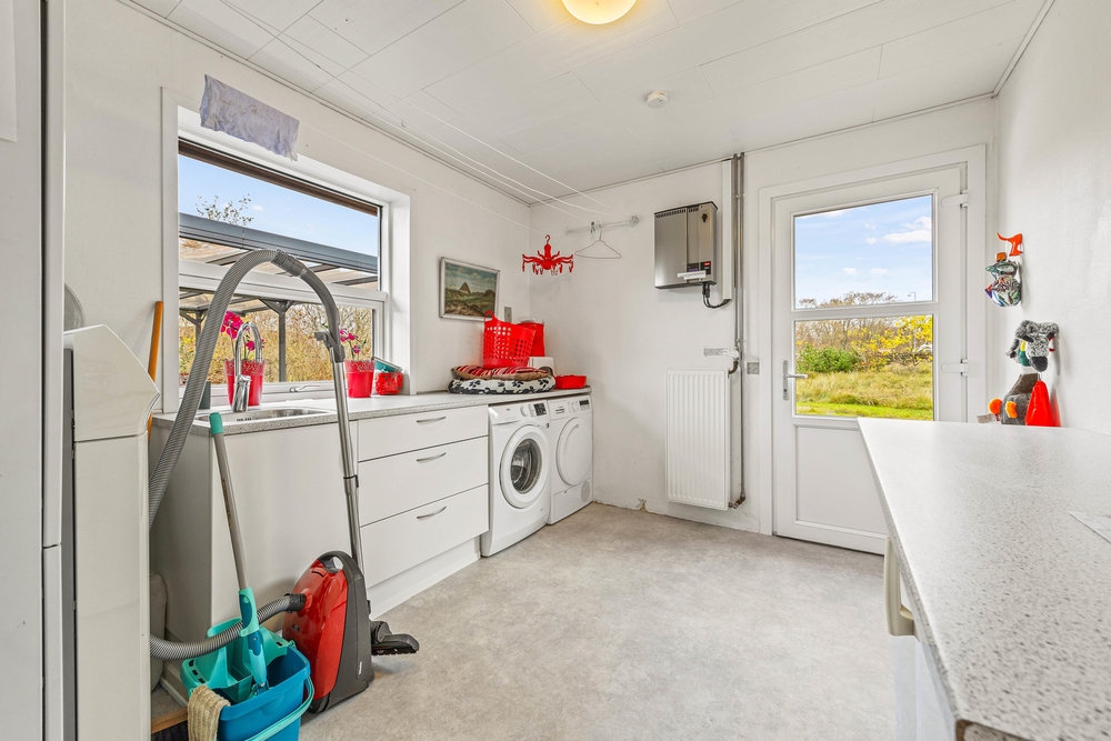 I de 2 badeværelser er der god plads til både den daglige hygiejne og til wellness. I forbindelse med det store badeværelse i annekset er der spabad og en lækker infrarødsauna, og udover det andet badeværelse er der også et gæstetoilet i sommerhuset. Bryggerset har vaskemaskine og tørretumbler, så I kan friske garderoben eller håndklæderne op i løbet af ferien. I de 4 soveværelser er der henholdsvis 3 komfortable dobbeltsenge og 1 soveværelse med 2 enkeltsenge, så I har flere muligheder for at fordele jer optimalt. Feriehuset opvarmes med solpaneler og der er en energibesparende varmepumpe, som hurtigt og effektivt sørger for et behageligt indeklima og en god temperatur. Desuden er der ladestik med kabel til el-bil ved feriehuset (ABB, Type 2).