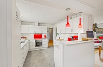 På Sønderbyvej 3 behøver du aldrig at kede dig ? her kan du være aktiv eller slappe af i det tempo, der passer dig. Den charmerende vinkelstue har originale Rømø-detaljer i indretningen, blandet fint sammen med en moderne og komfortabel møblering. Slap af i sofaen og følg samtidig med i, hvad der sker på terrassen. I forbindelse med stuen er det åbne, rummelige køkken med en køkken-ø. Her er alt, hvad I behøver for at forkæle hinanden med lækre hjemmelavede måltider. Imens kan nogle holde jer med selskab med et glas vin ved køkken-øen. Om aftenen kan de voksne slappe af i saunaen i annekset eller nyde en tur i spaen. Imens kan børn og barnlige sjæle give den gas på sommerhusets Playstation 3, Nintendo Wii eller spille en omgang bordfodbold.