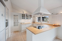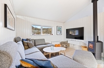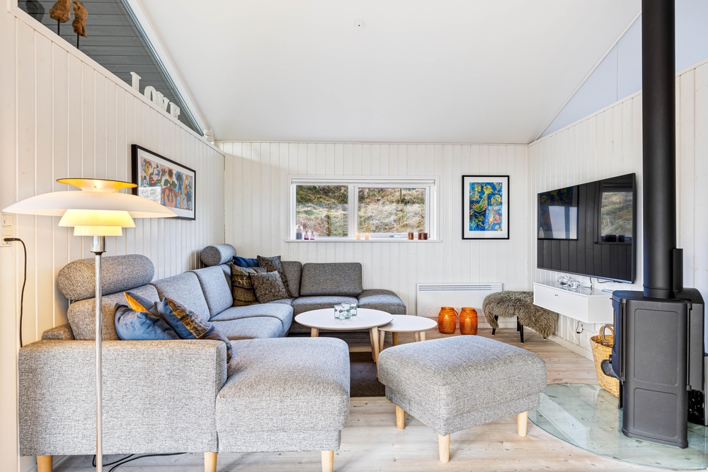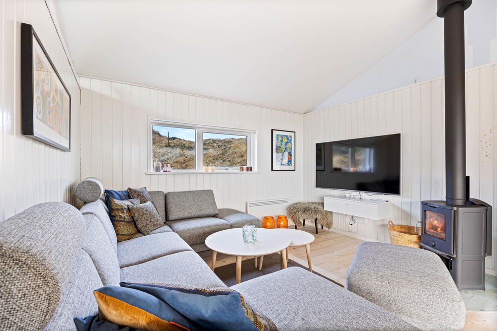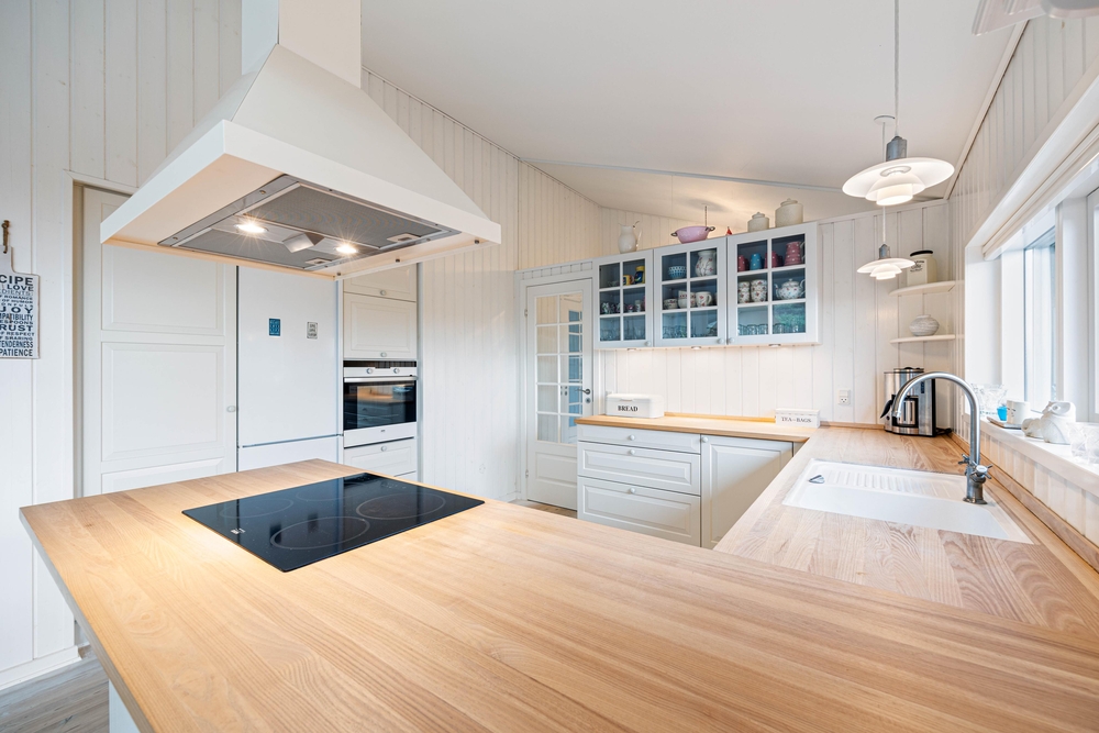 Når du træder ind ad døren, vil du se et godt, traditionelt sommerhus men med et moderne pift. De lyse gulve, hvide trævægge og lyse indretning vil lægge op til en hyggelig ferie. Sommerhuset er nemlig bygget i 2008, hvilket er med til at give charmen til huset. Det rummelige køkkenalrum byder på gode snakke over køkkenet, sjove familiespil ved bordet og hyggelige filmaftener i sofaen foran brændeovnen.