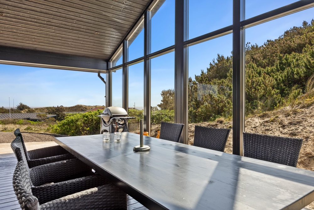 På den 10725 m2 klitgrund finder du en afskærmet og overdækket terrasse med både havemøbler, solvogne, udespa og grill. Her vil det altså være perfekt at tilbringe tiden på de lune sommerdage og -aftener. Når det bliver lidt koldere, kan I tænde for terrassevarmeren og fortsætte jeres aften her, for terrassen er endda spotbelyst.